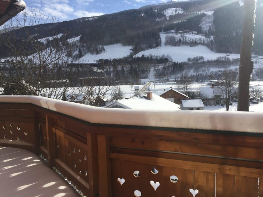 Hlavním lákadlem je balkon s nádherným výhledem na známý lyžařský kopec Planai a na horské město Schladming.
