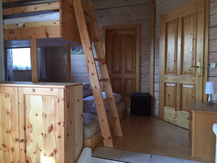 Apartmán má ložnici s manželskou postelí a další pokoj s patrovou postelí (přístup do tohoto pokoje je přes ložnici s manželskou postelí).
