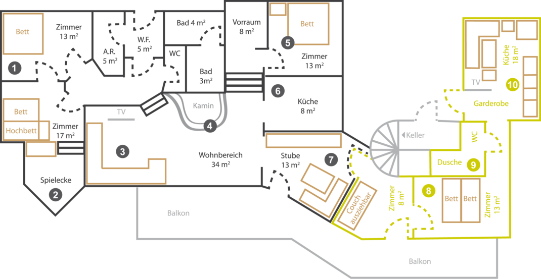 Pro větší skupiny je také možné využít obě obytné jednotky společně.