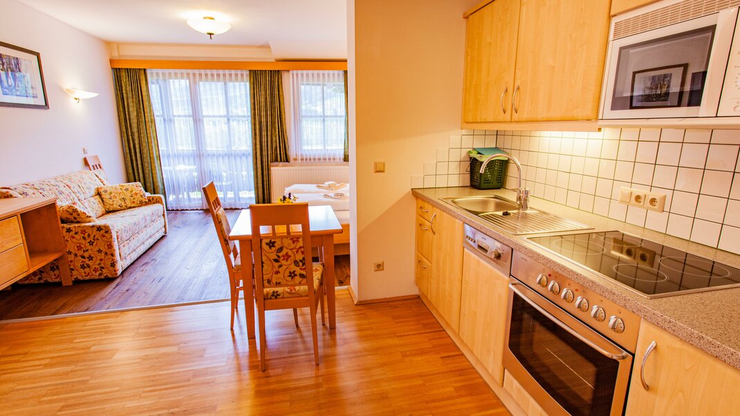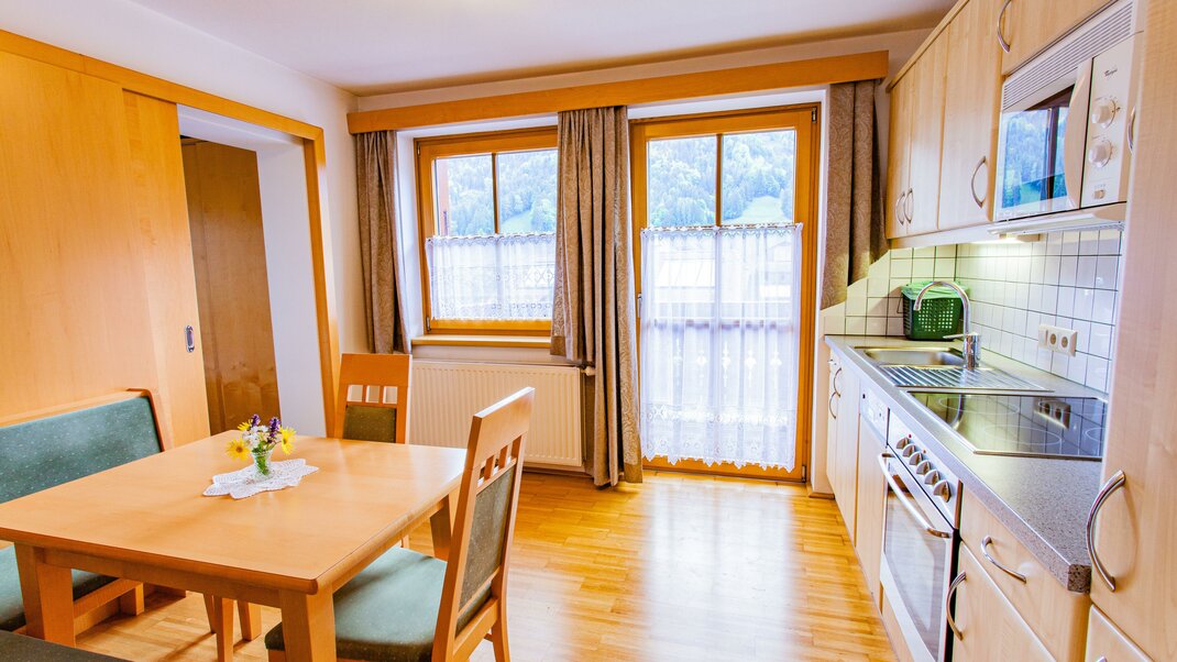 "App. Weissenbach" o velikosti cca 55 m2, 2 místnosti, 1 dvojlůžkový pokoj, 1 kuchyň s rozkládacím gaučem pro 2 osoby, 2 balkony, 1 koupelna se sprchou a WC, 2 SAT-TV; mikrovlnná trouba, elektrický sporák, myčka na nádobí, kávovar, toaster, vhodné pro alergiky, služba dodání pečiva.