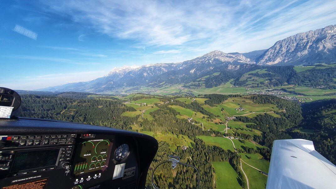Před hospodou Grimmingblick odbočte vlevo, kolem obecního úřadu Öblarn pokračujte podle směrovek "Gästehaus Traninger" až na konec silnice.
