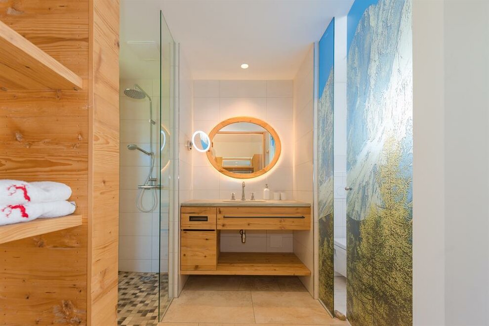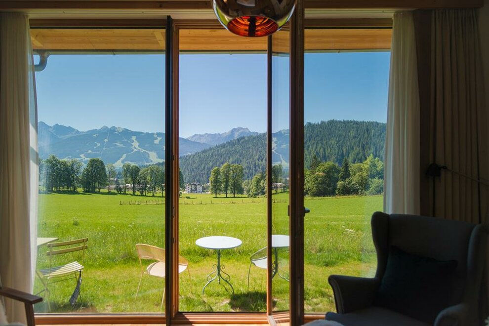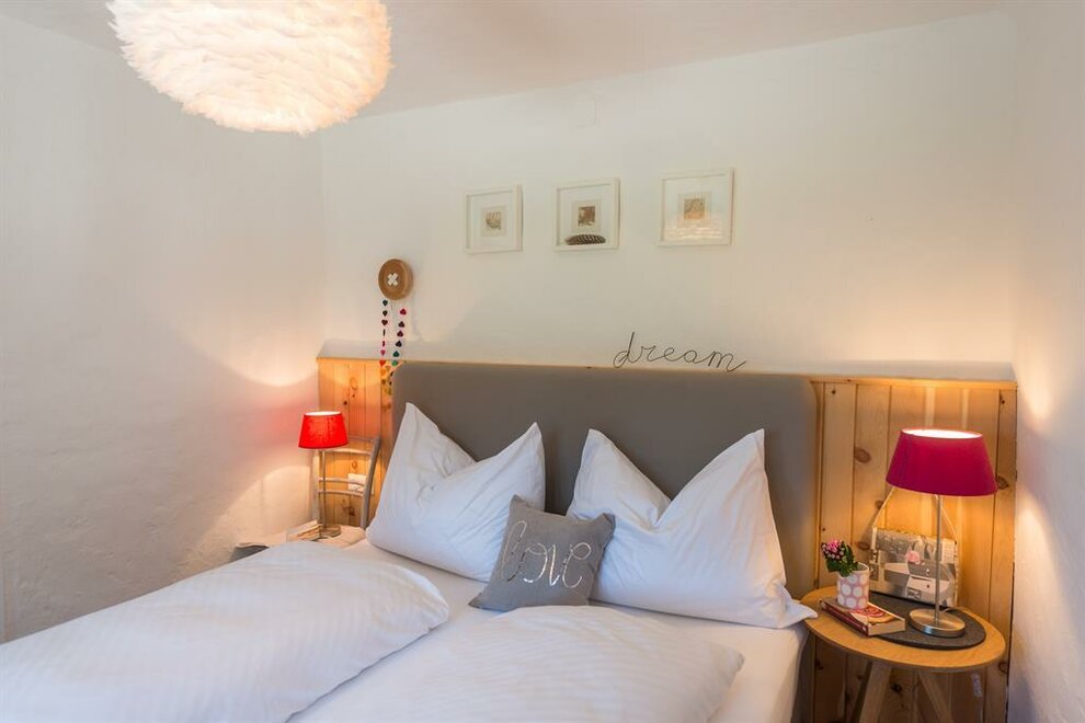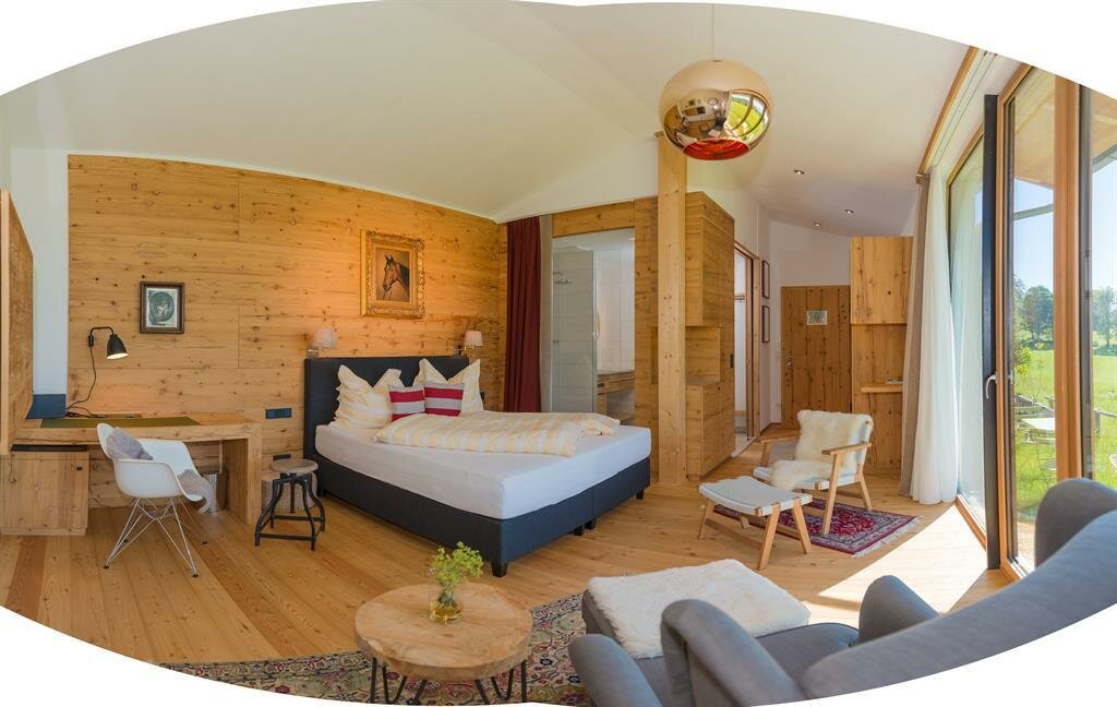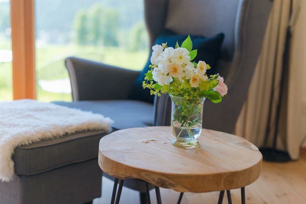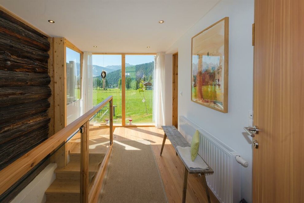 Apartmán pro pohodlí (suite) Zuhäus’l - Ideální pro páry, které si chtějí dopřát zvláštní dřevěný dům! Nekuřácký apartmán pro 2 osoby, 60 m² / úžasná, soukromá, zčásti zastřešená jihovýchodní terasa s nádherným výhledem / útulná kuchyň s jídelním koutem ve staré části / světlá koupelna se sprchou / extra WC / bezplatné LAN připojení k internetu / TV a rádio Moderní, aniž by byl chladný – to je náš jednoduchý elegantní přírodní styl. Přímé linie a syté barvy. Velká skleněná stěna a pohled na hory – přímo z postele! Tradičně útulný – k tomu patří i obytná kuchyň. - Ideální pro vás, pokud chcete z běžkařské stopy rovnou do postele!