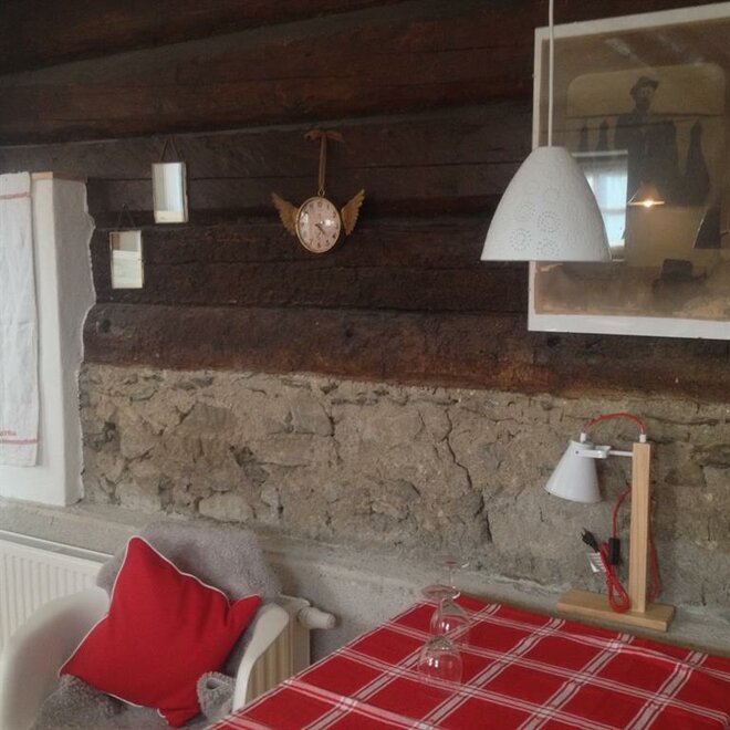 2 ložnice, 1 galerie, obývací jídelna, sprcha/WC, malá kuchyně, velmi útulné, se starým nábytkem.