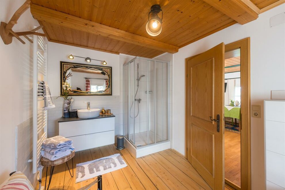 Naše čtyři apartmány v moderním, ale tradičním stylu nabízejí veškerý komfort. V zemědělském domě se nachází 70m² velký byt na dvou patrech pro 2 - 6 osob. Je vybaven dvěma oddělenými ložnicemi, spací galerií, útulným obývacím pokojem, sprchovým koutem, WC, kuchyní s mikrovlnnou troubou, elektrickým sporákem a myčkou nádobí, vlastní terasou s loukou a lehátky.