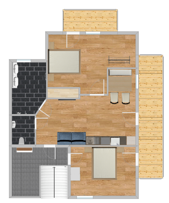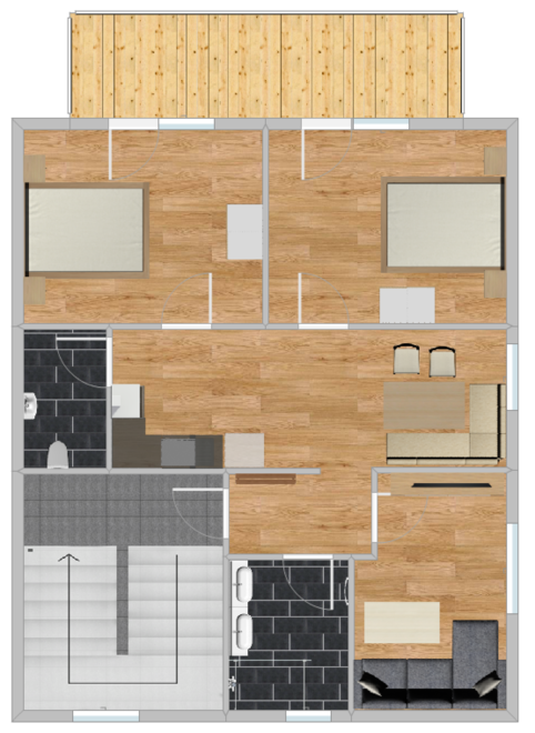 POKOJE & VYBAVENÍ2 až 6 osob - 80 m²- 2 ložnice s manželskou postelí