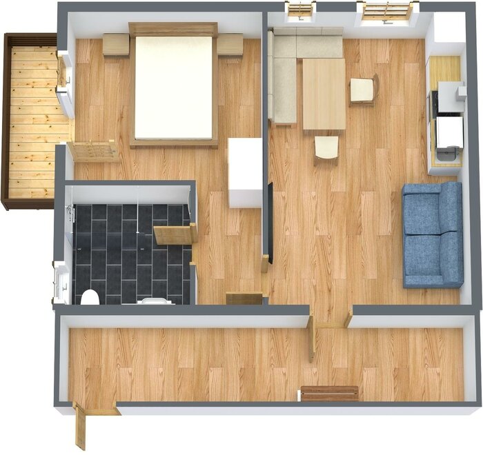 Velikost 35 m² Obsazení 1 - 4 dospělí , 0 - 3 děti Pokoje 2 Ložnice 1 Podrobnosti o pokoji