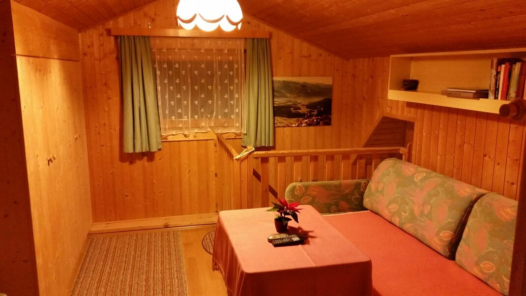 Kompletně vybavená mansarda s kuchyní (balkón na severní straně s výhledem na hory), útulná malá televizní místnost, dvoulůžkový pokoj (malý balkón na jižní straně), sprcha, WC.