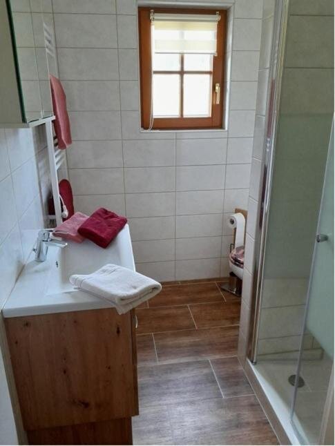 Další prostorná koupelna s fénem a pračkou. Povlečení, ručníky a utěrky jsou k dispozici a zahrnuty v ceně.