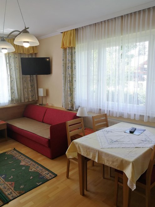 Nově zařízený apartmán skládající se z ložnice s manželskou postelí, TV a balkonem a obývacího pokoje se spací částí, pohovkou, TV, posezením a kuchyňským koutem, jakož i koupelny se sprchou a WC. Ideální pro společnou dovolenou s rodinou.