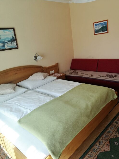 Dobrý spánek najdete u nás v nově zrenovovaných trojlůžkových pokojích s vanou a WC.
