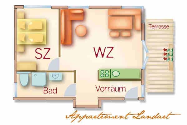Užijte si náš nový apartmán pro 2 - 4 osoby v moderním dřevěném stylu o velikosti 56 m². Příjemná ložnice s manželskou postelí, prostorný obývací jídelní pokoj s rozkládací pohovkou, plně vybavená kuchyň, rohová lavice, koupelna s odděleným WC, fén, podlahové vytápění a šatník. Vlastní vchod s terasou, satelitní TV a internet s Wi-Fi připojením na vás čeká.