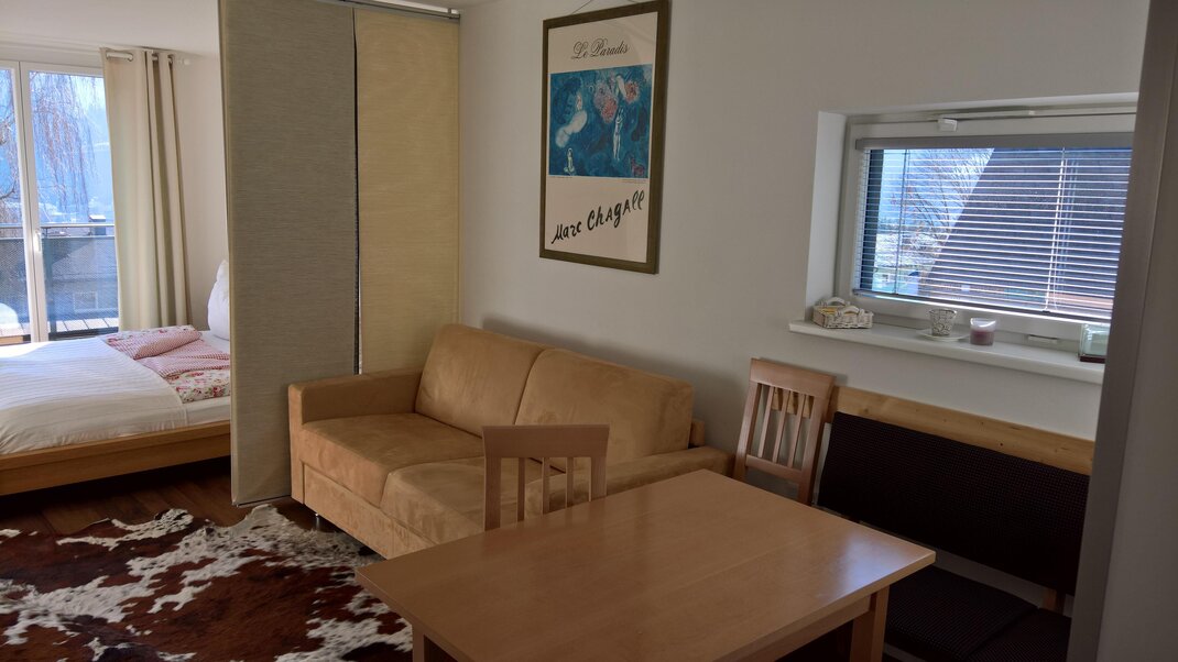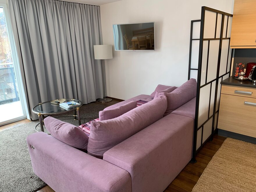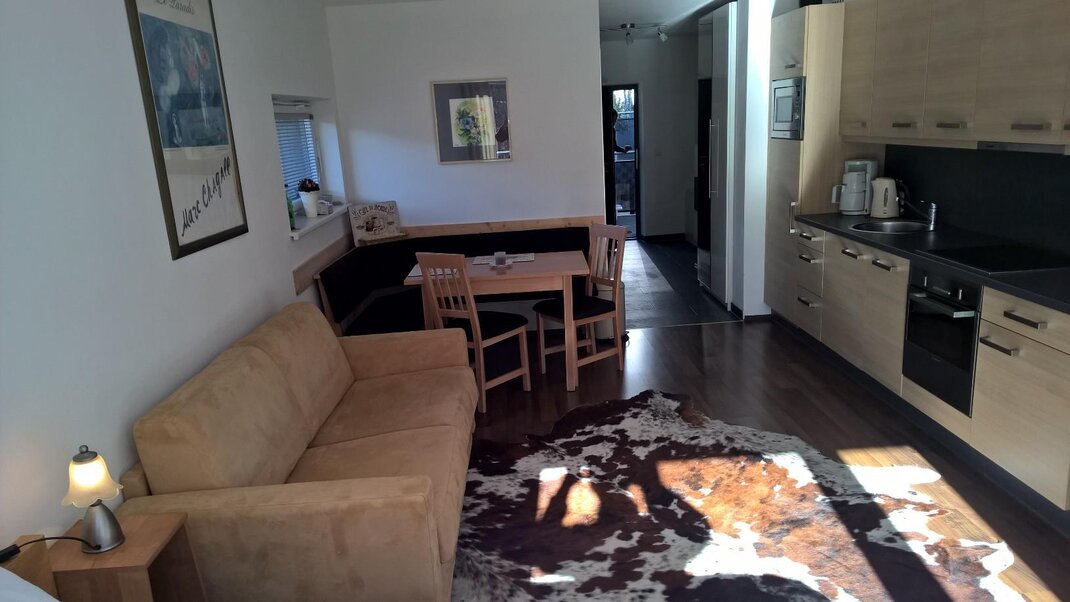 Jedná se o 1-pokojový apartmán s boxspring postelí a velmi prostornou obytnou kuchyní, ve které se nachází také rozkládací pohovka pro 2 osoby.Jižní balkon nabízí nádherný výhled na horský svět Schladmingu.