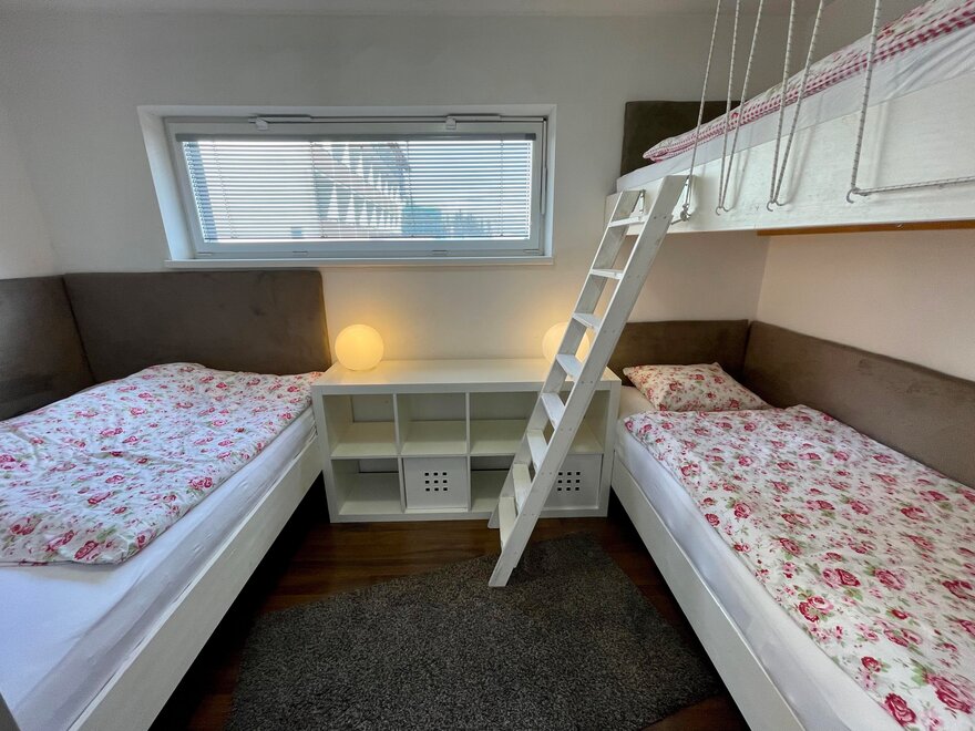 Tento apartmán má další spací místnost s francouzskou postelí a patrovou postelí. (+3 osoby)Další informace naleznete na: