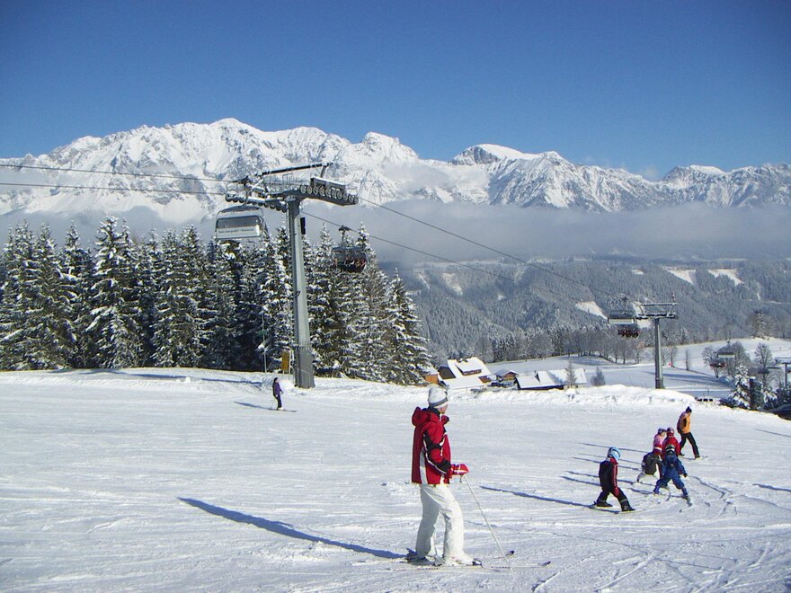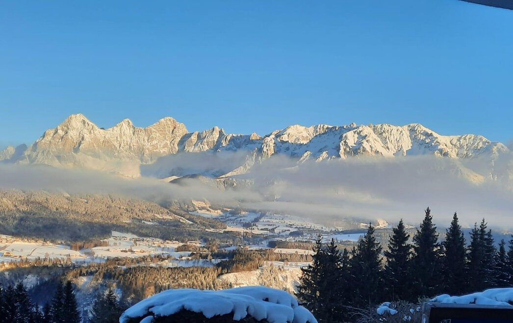 V létě i v zimě máme vynikající polohu s úžasným výhledem na pohoří Dachstein. Apartmán a dvoulůžkový pokoj jsou plně vybavené. Jsme zde pro vás, abyste se od první chvíle u nás cítili dobře.
