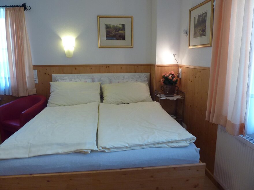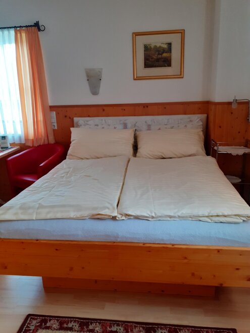 Slunný pokoj pro 2 osoby. Přibližně 15 m², plochá obrazovka TV, internet, lednička, kávovar, rychlovarná konvice, mikrovlnná trouba, koupelna se sprchou, toaleta a podlahové topení. Malá chodba pro lyžařské boty atd. s podlahovým vytápěním. Pronajímá se od 2 nocí. Wi-Fi je samozřejmostí, pečivo na přání. Můžete si připravit snídani sami, nádobí vám poté umyjeme.