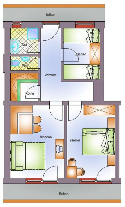 Velikost 60 m² Obsazení 2 - 6 dospělí , 0 - 4 děti Pokoje 3 Ložnice 2 Podrobnosti o pokoji