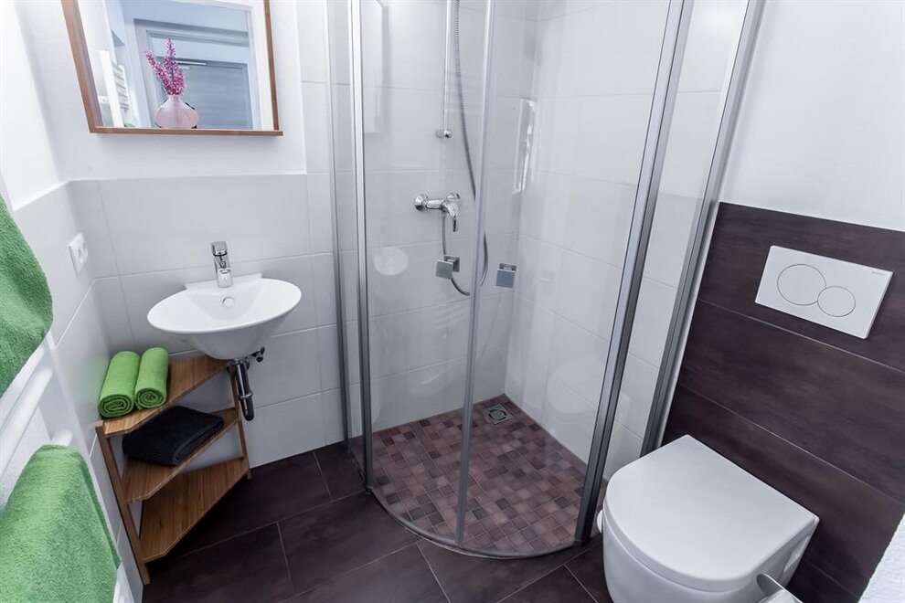 4-pokojový apartmán s 32 m² pro 2 osoby, se 1 ložnicí, koupelnou, WC a obývací kuchyní.