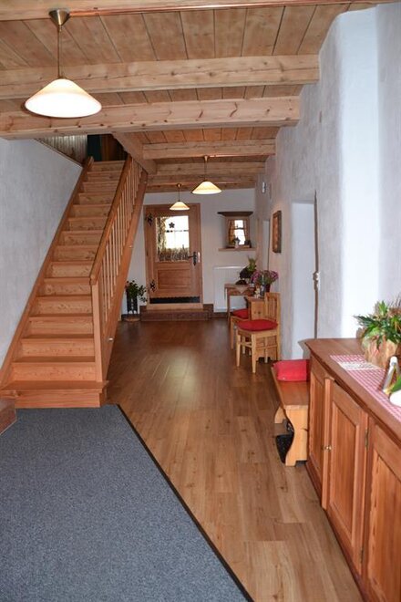 Naše poloha umožňuje uniknout každodennímu shonu a nechat duši odpočívat. Hřiště kolem domu s houpačkou, trampolínou, stolním tenisem, stolním fotbalem a herní plochou splňuje všechna očekávání. Na farmě si děti mohou hladit a krmit našeho psa a kočky. V létě je naše stádo krav na letním pobytu v Obertalu.