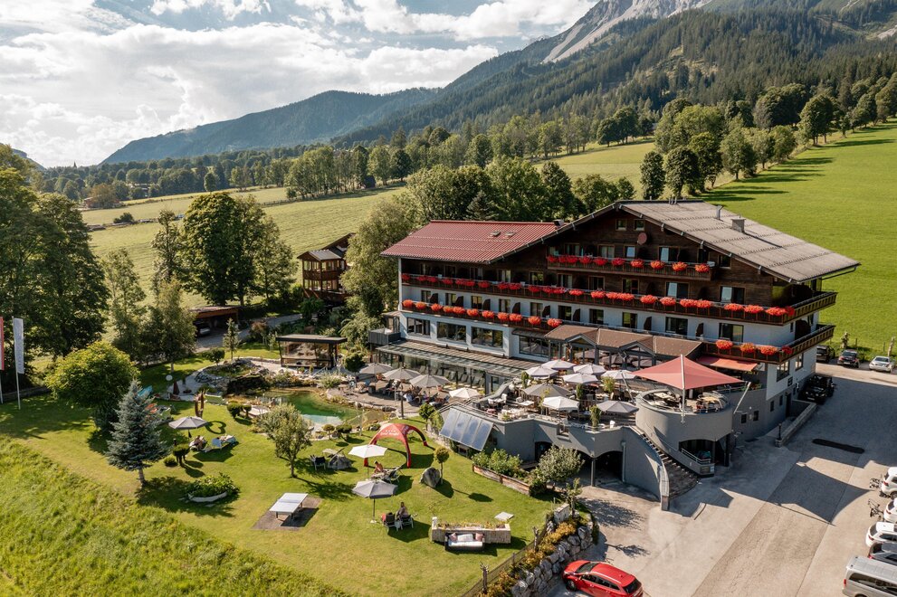 Užíváte si života? Ano? Pak jste u nás na správném místě. My, vaši hostitelé Caro a Hiasi s dcerou Sinou, a celý náš tým vás chtějí hýčkat podle vašeho gusta. Dovolená přece není jen nějaký čas v roce, ale jeden z nejkrásnějších. Minimálně by taková měla být. Děláme, co je v našich silách. Krajina, kterou každý den nacházíme, úchvatné horské pozadí Dachsteinu a nádherná přírodní scenérie kolem hotelu, to všechno s vámi rádi sdílíme. Vypněte a načerpejte energii v tomto jedinečném prázdninovém regionu Štýrska. Žijeme tam, kde jiní tráví dovolenou.