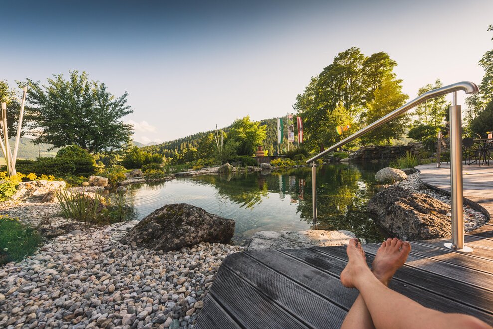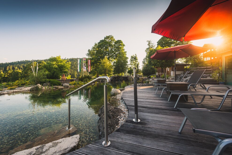 Po dni plném zážitků si odpočiňte v našem „BERGHOF SAUNA & SPA“ při plavání, v infračervené, bio, finské a panoramatické sauně nebo v amethystovém parním lázní či při příjemné masáži. V létě se opalujte na sluneční terase nebo se osvěžte v našem koupacím rybníku. Naše malá fitness místnost nabízí všem sportovním nadšencům dobrou škálu tréninkových zařízení.