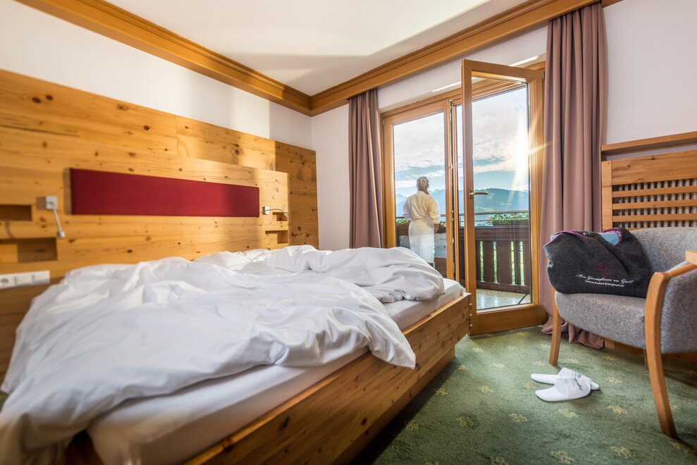 Dvojlůžkový pokoj Dachstein cca 30m² s balkonem, sprchou nebo vanou, WC, TV, telefon, trezor, koupací plášť, koupací pantofle, balkon.