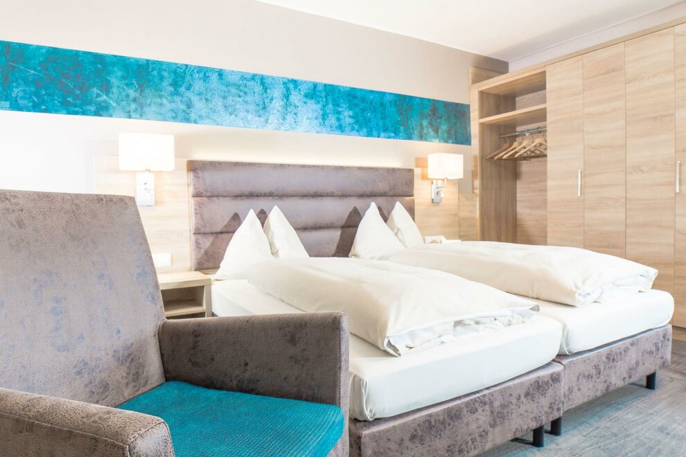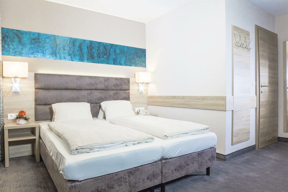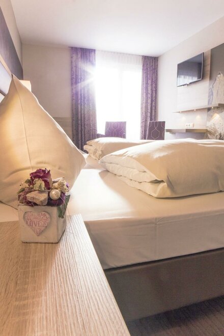 Moderní pokoje s koupelnou/WC, plochou obrazovkou TV, volným W-Lanem, trezorem na pokoji, telefonem, balkónem.
