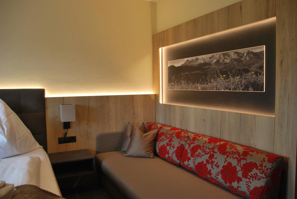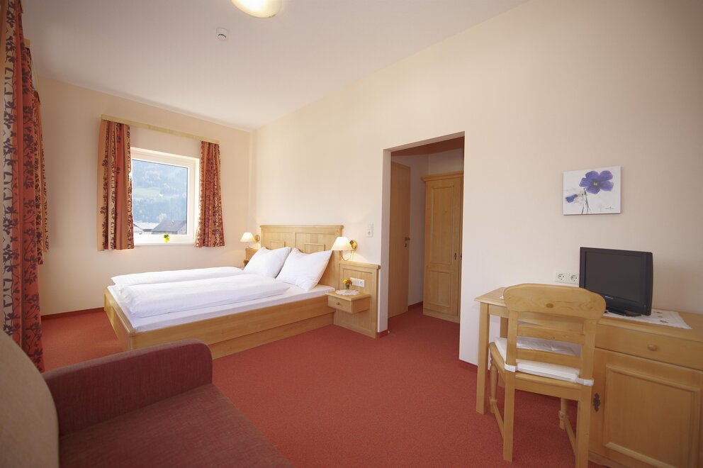 Všechny pokoje jsou moderně zařízené, s předsíní, sprchou/WC, rozkládací pohovkou, TV, balkonem a výhledem na Ennstal, stejně jako na Planai a Hochwurzen (WLAN, fén, nekuřácké pokoje)