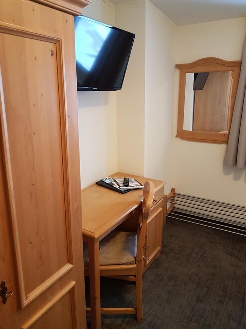 nekuřácký pokoj, ložnice s kobercem, povlečení pro alergiky, skříň, psací stůl, vlasový fén, WiFi, povlečení k dispozici, toaletní potřeby, společný obýv./ložnice, přikrývky, kabelová TV, Größe m²: 15, rádio, topení, koupací plášť, nový pokoj, ručníky k dispozici, TV