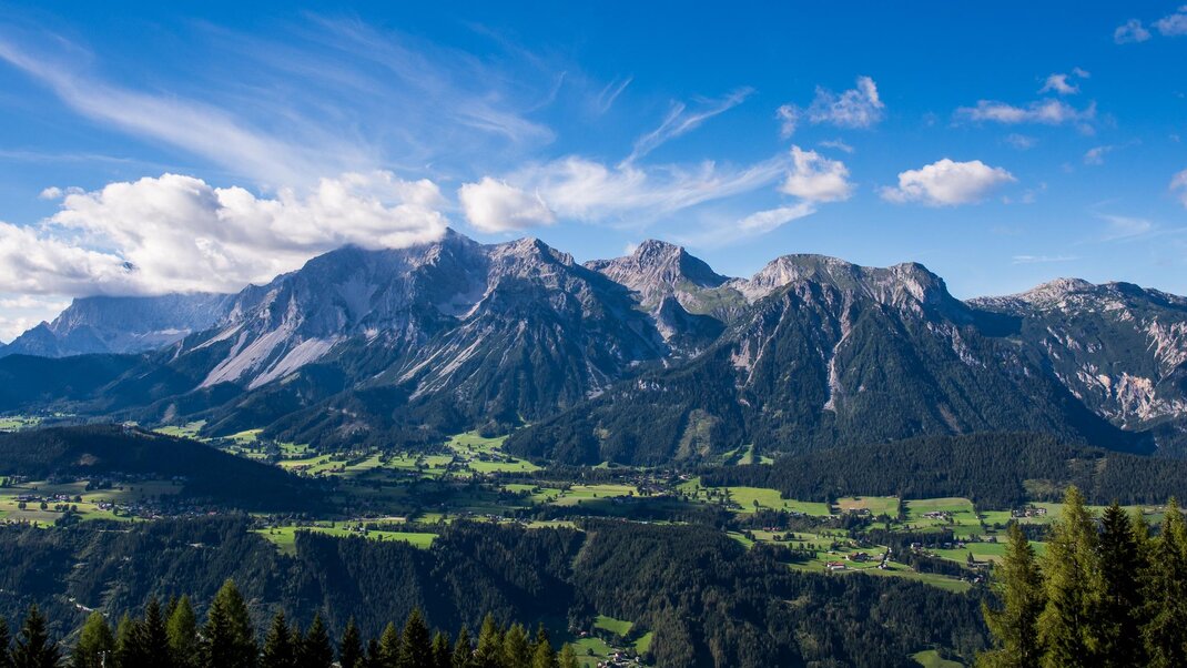 • fantastický výhled směrem k Ennstalu, Dachsteinu a Hochwurzen