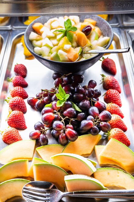 Halfboard includes: • balanced breakfast buffet with vital-corner • 5-course dinner menu (different main courses, vegetarian menu) Equipment/Services included in winter: • full time á-la Carte-restaurant • spa area with bio-sauna, steambath, relax- and outdoor area and infrared cabin (Physio-therm) • direct located at the ski slope • heated ski room • elevator to all floors • sun terrace • marvellous view to the Dachstein mountain and over our Enns valley • near the centre: 100 m to the walking bus stop, shopping facilities • entertainmentcenter „Rohrmooser-Erlebniswelt“ • parking area directly at the hotel • airport/railway-transfer upon request Equipment/Services included in summer: • á-la Carte-restaurant • spa area with bio-sauna, steambath, relax- and outdoor area and infrared cabin (Physio-therm) • summercard www.sommercard.info • bicycle cellar • elevator to all floors • sun terrace • marvellous view to the Dachstein mountain and over our Enns valley • great hiking tours starting directly from the house • nearly in the centre: 100 m to the walking bus stop, shopping facilities • entertainmentcenter „Rohrmooser-Erlebniswelt“ • parking area directly at the hotel • airport/railway-transfer upon request