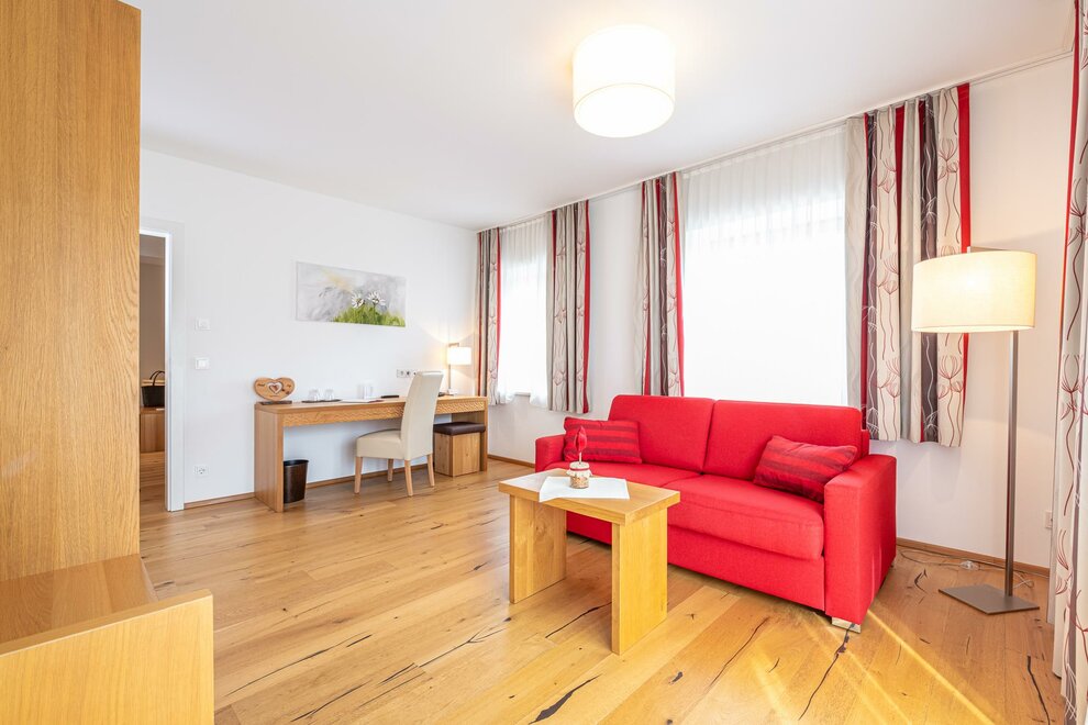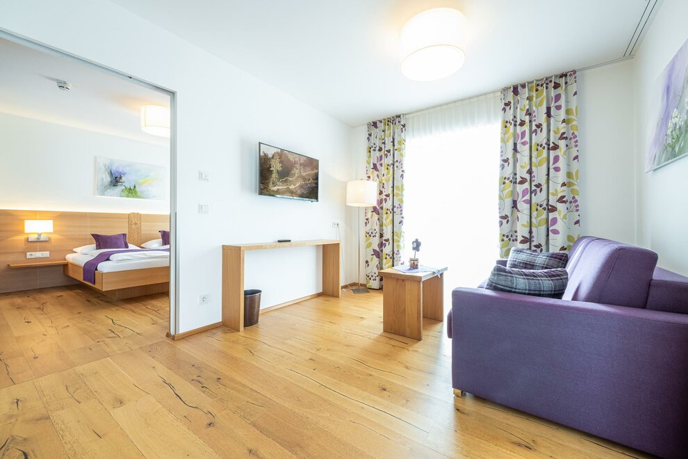 Prostorné a přátelsky světlé suity/familienzimmer na vás čekají. Naše suity/familienzimmer jsou skvěle vybavené: obývací a spací prostor oddělený, sprcha a WC oddělené, fén, plochá TV, W-Lan, posezení a balkon dělají z vaší dovolené sen o dovolené. Velikost pokojů: cca 44m²