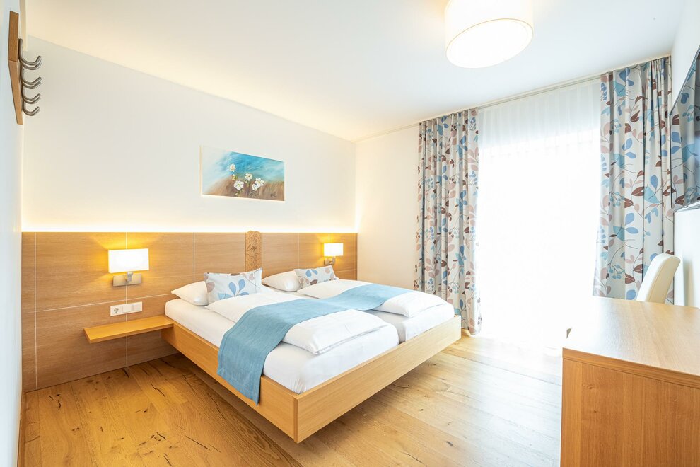 Prostorné a přátelsky světlé dvoulůžkové pokoje na vás čekají. Naše dvoulůžkové pokoje jsou skvěle vybavené: oddělená sprcha a WC, fén, plochá TV, W-Lan, posezení a balkon promění vaši dovolenou v dovolenou snů. Velikost pokojů: cca 29m²