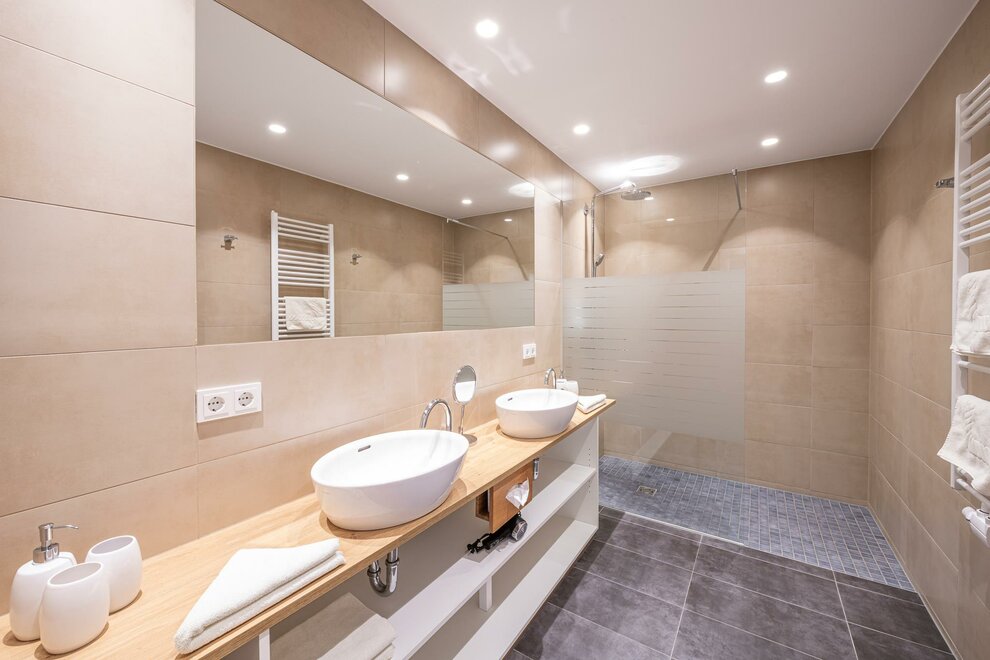 dvojité umyvadlo, počet toalet: 1, sprcha, oddělené WC
