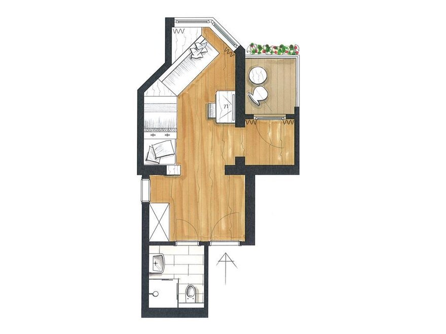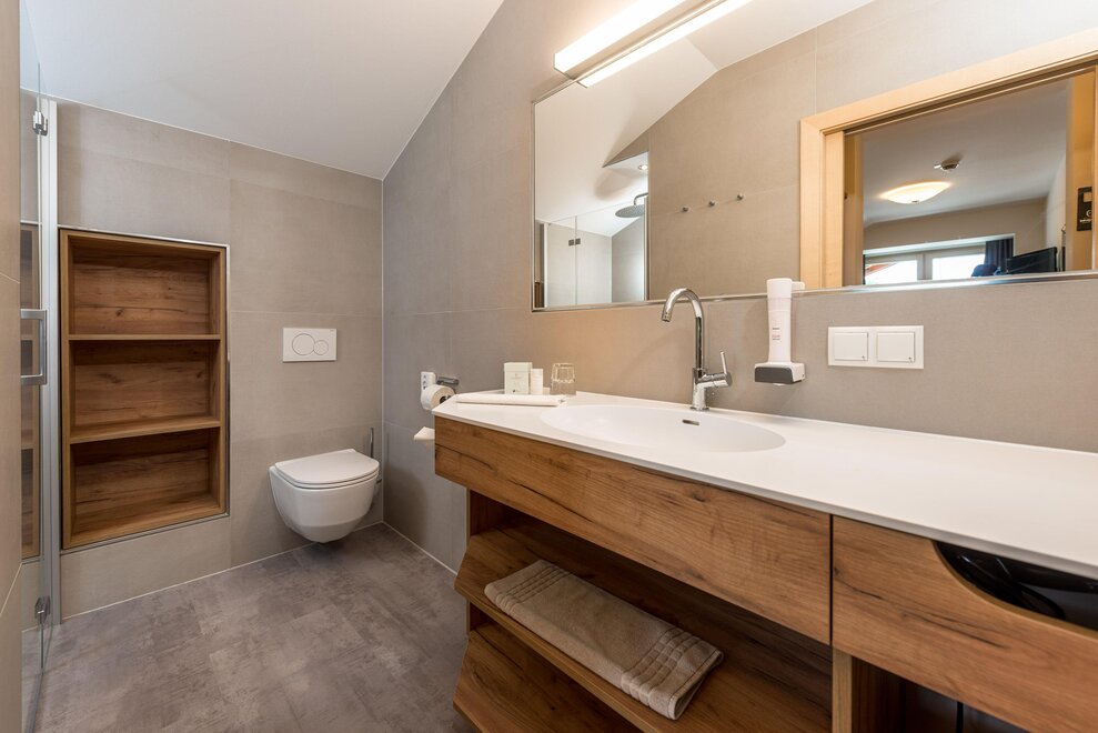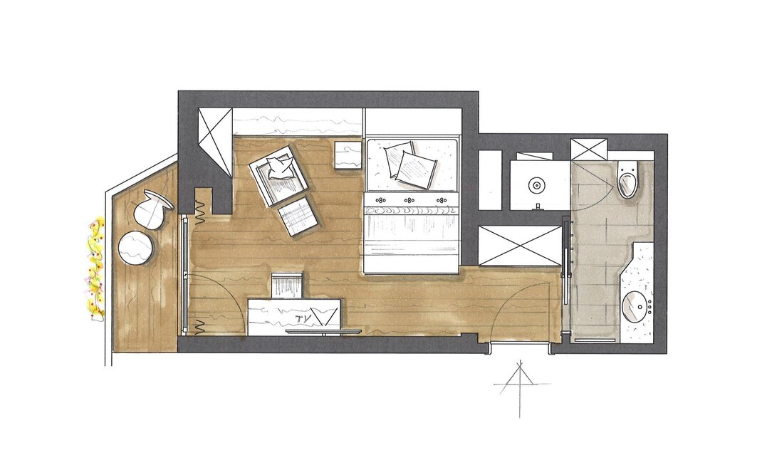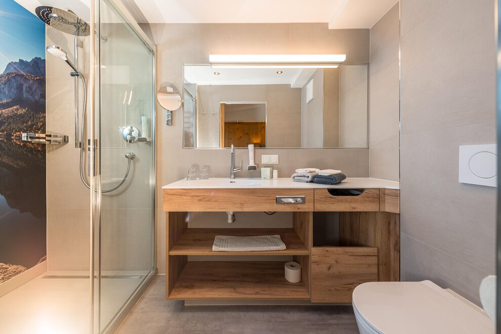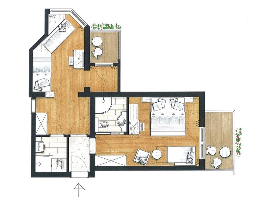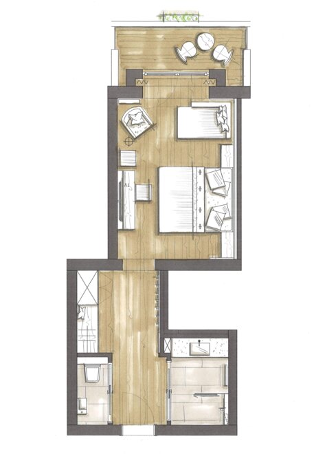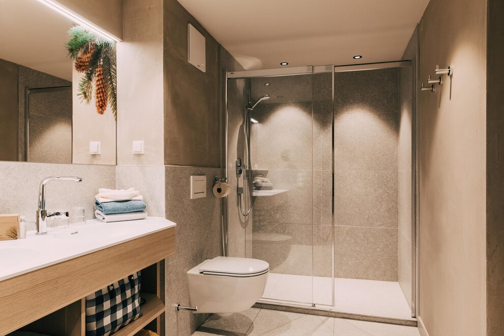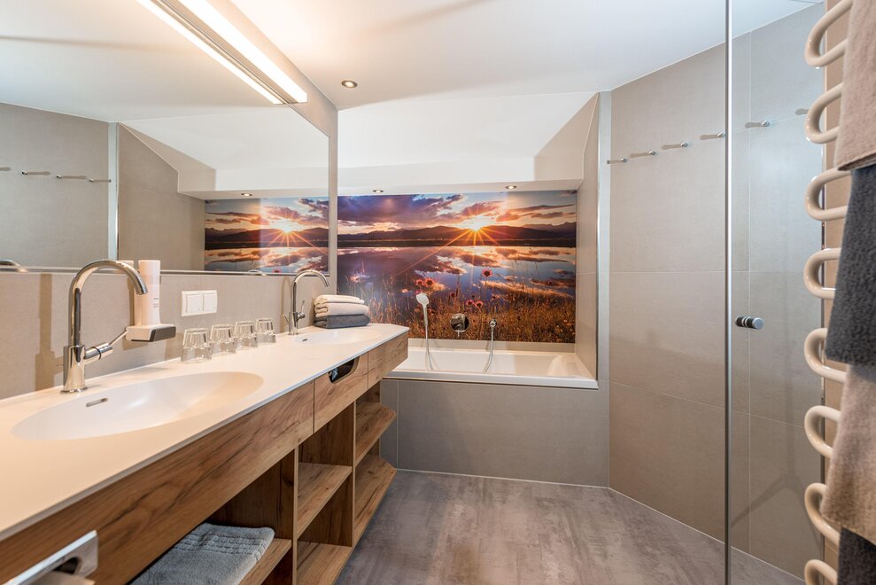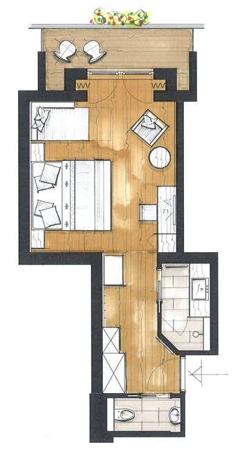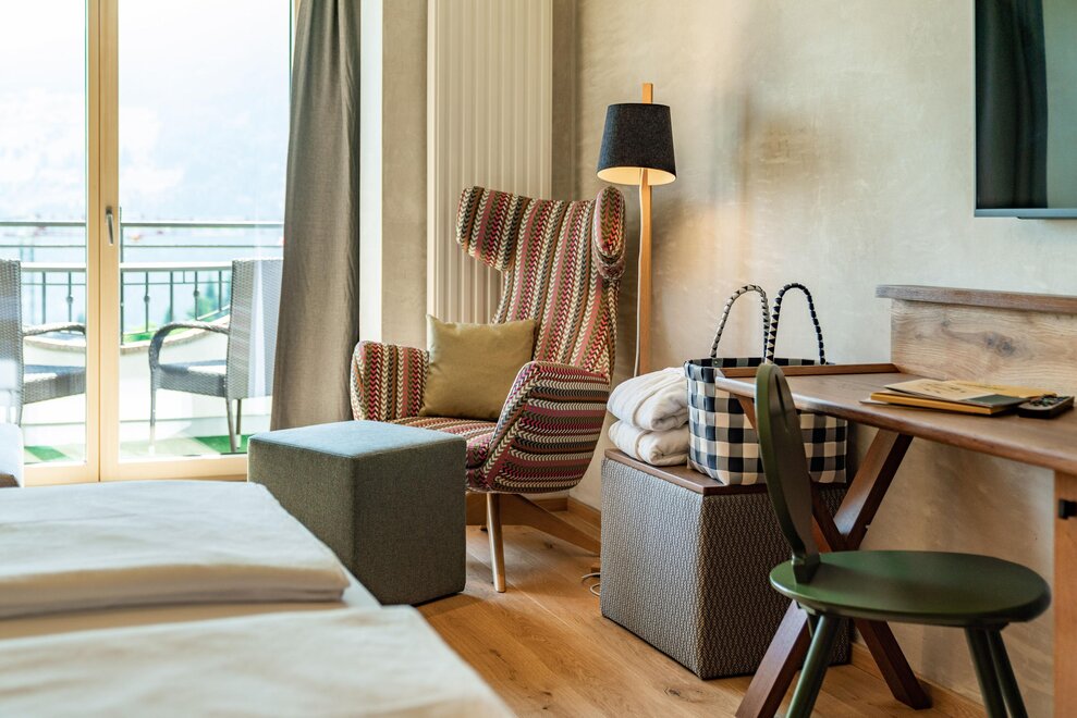 Prostorné apartmá v hlavní budově s jižním balkonem splňuje sny o dovolené. Protože vybavení z přírodního smrkového dřeva vytváří útulnou atmosféru a extra plochá obrazovka TV poskytuje zábavu v klidných dnech. Apartmá má oddělenou obytnou část. Koupelna se sprchou je oddělená od toalety a k dispozici je také kávovar na espresso a konvice na čaj.