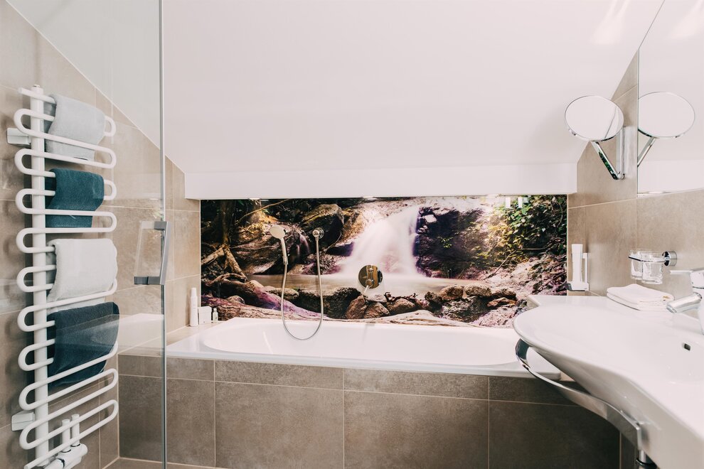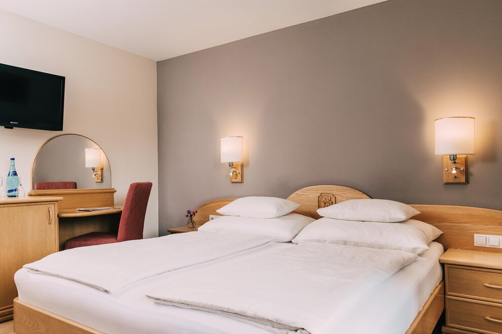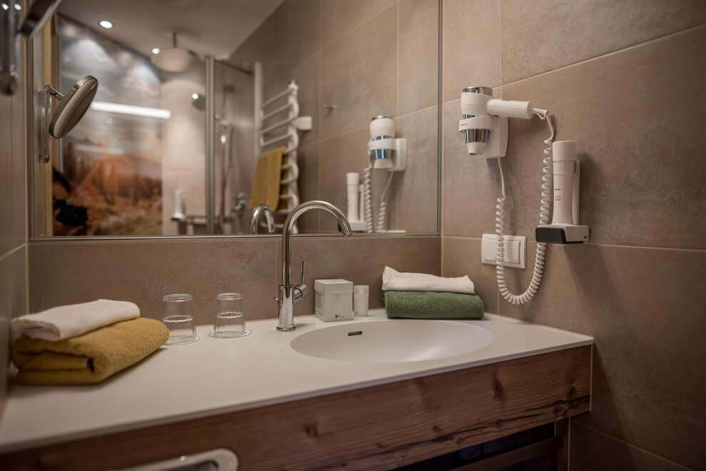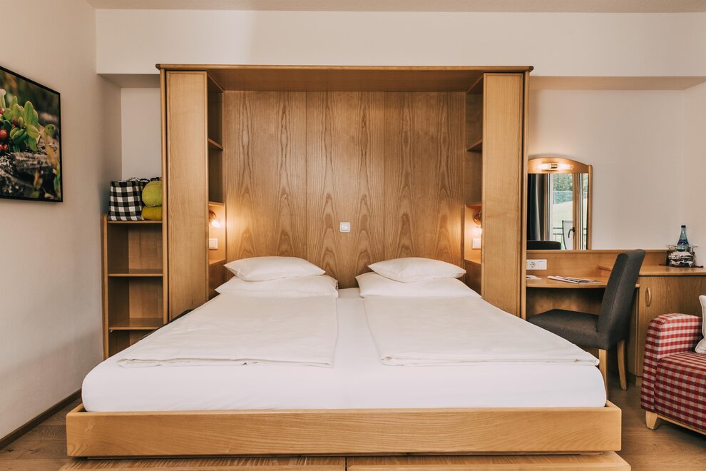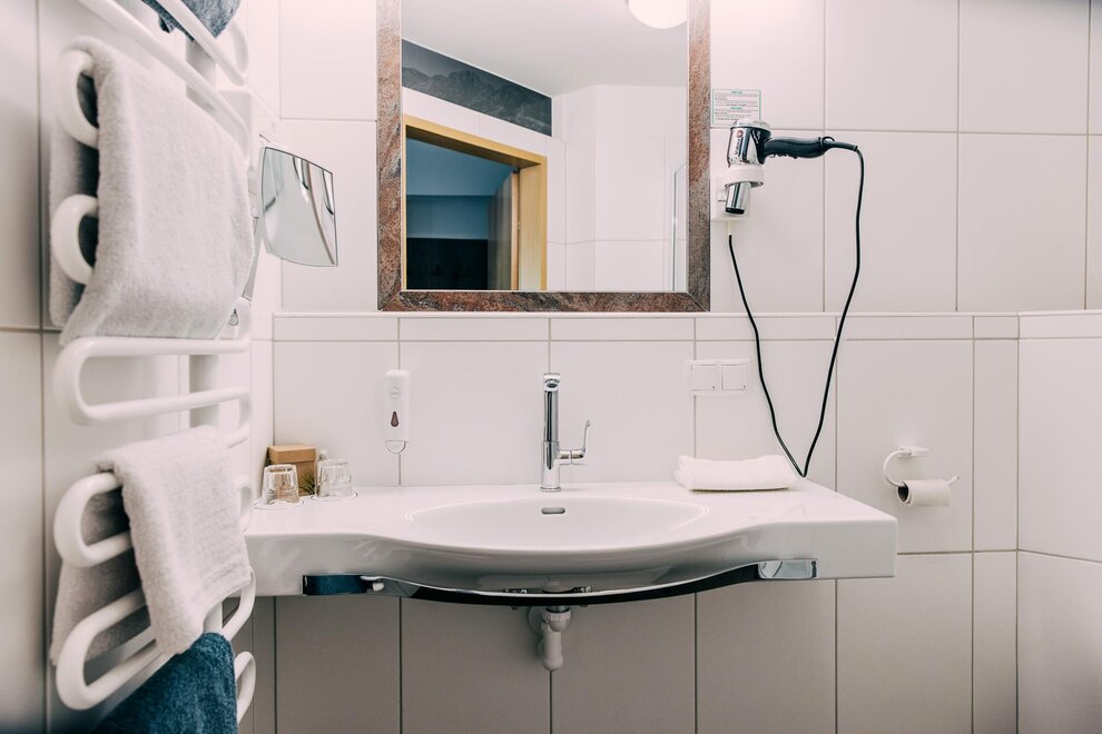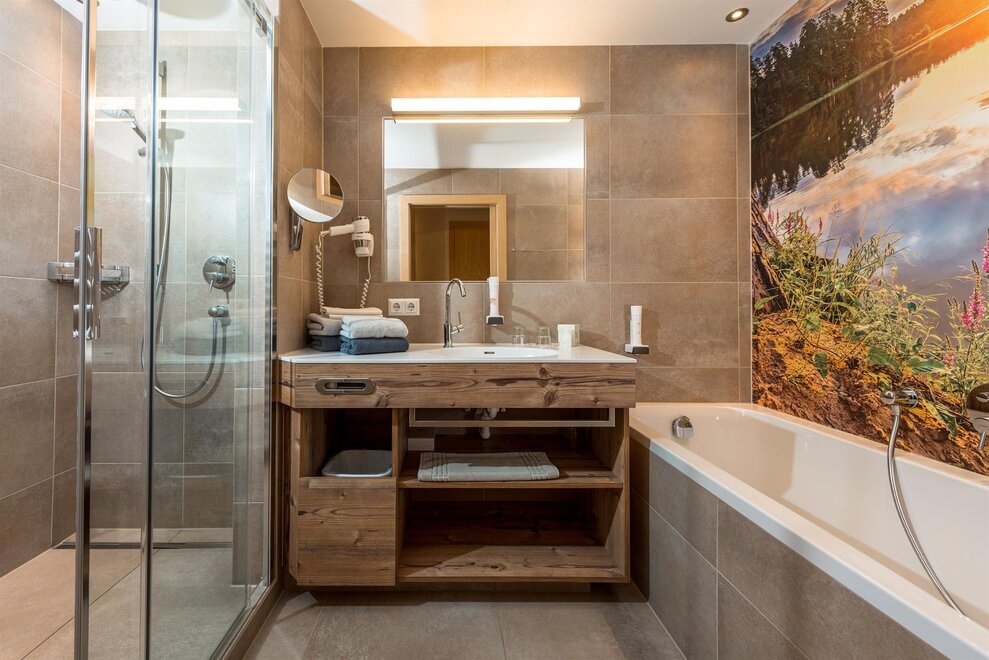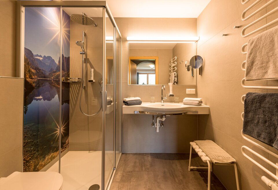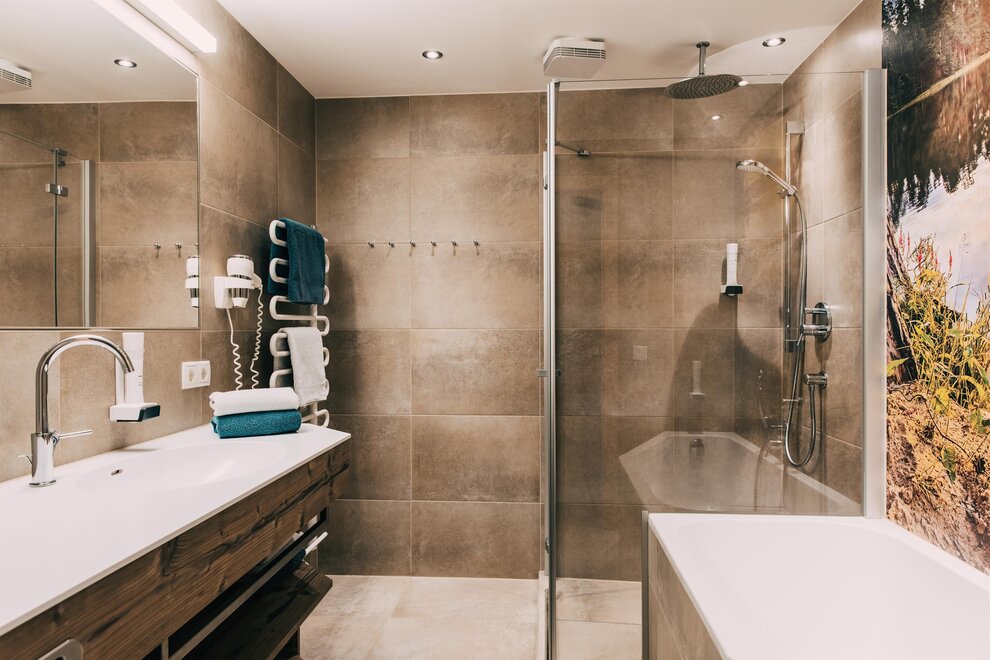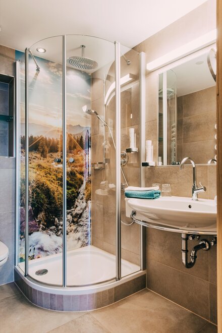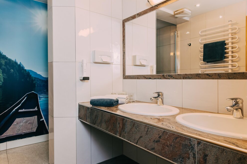 Dvoulůžkový pokoj typu "Tauern" s sprchou nebo vanou, balkonem, plochou TV, trezorem a telefonem. Možnost přistýlky, cca 24-30 m² Částečně bezbariérové koupelny - pouze na vyžádání!