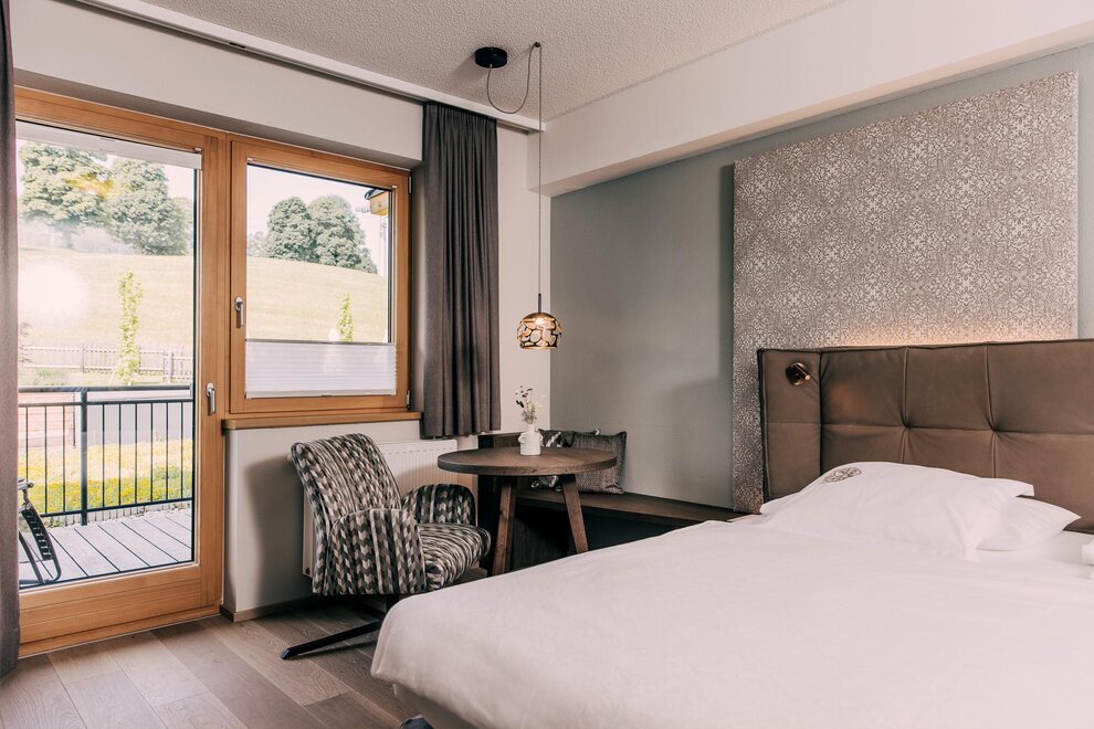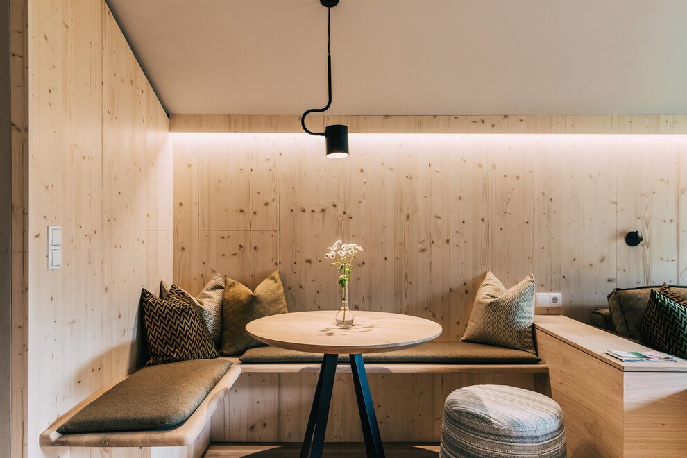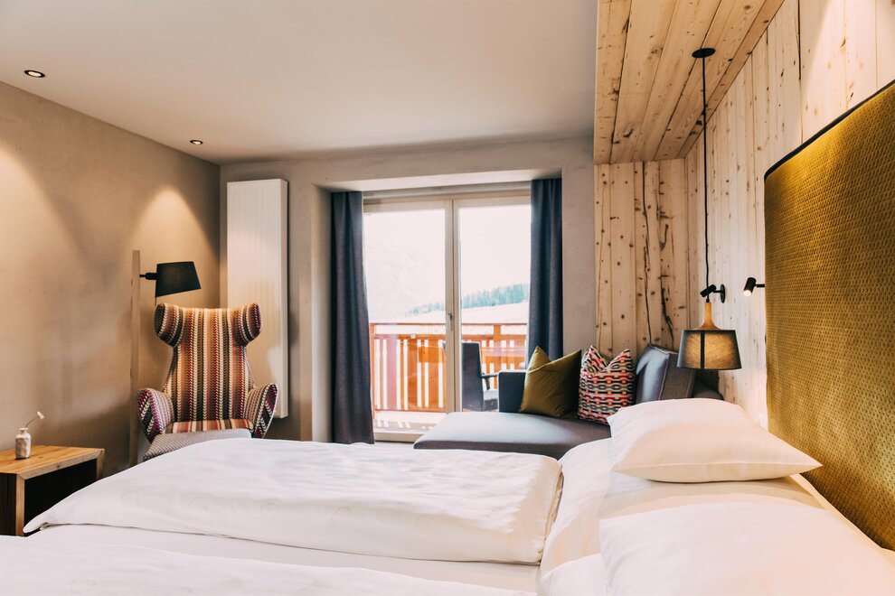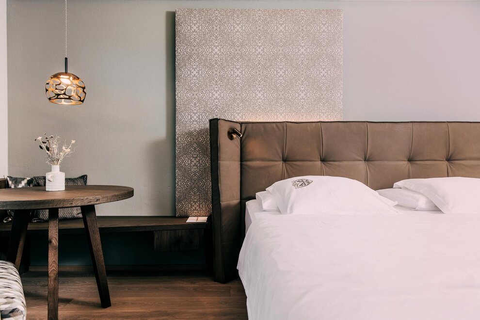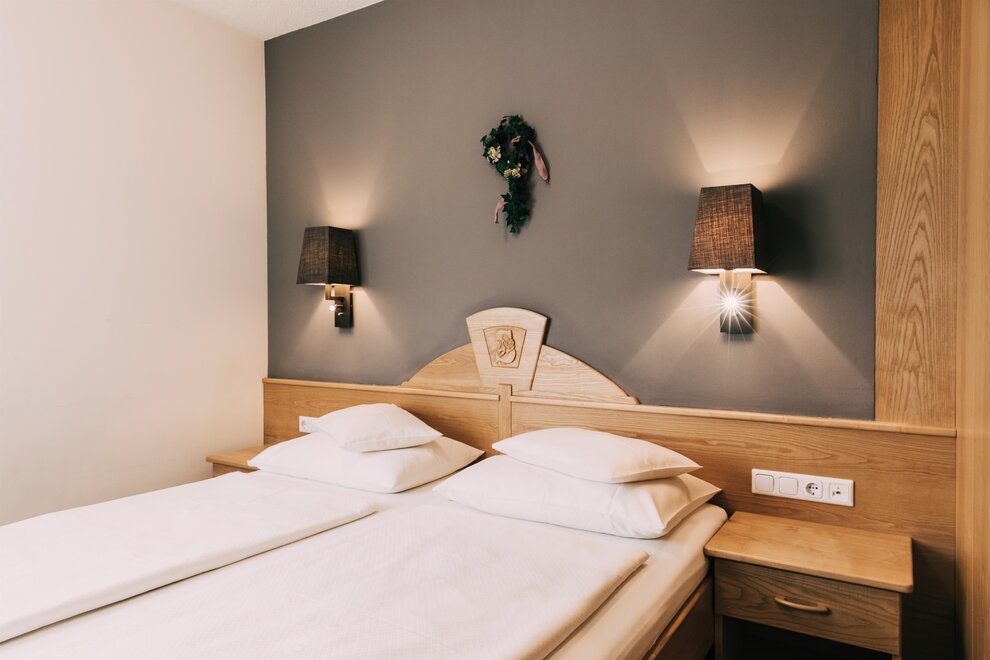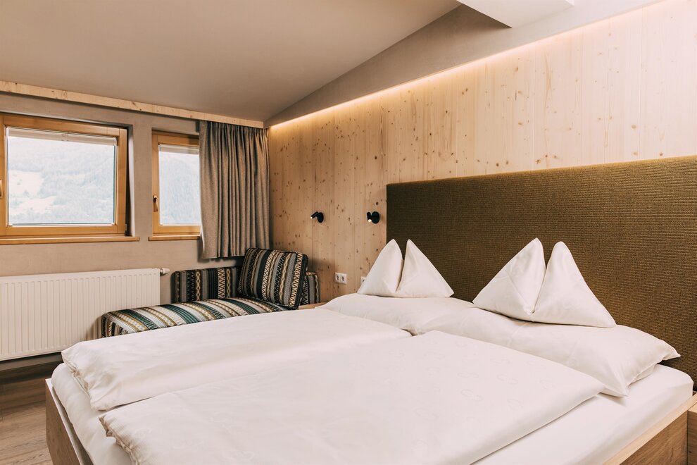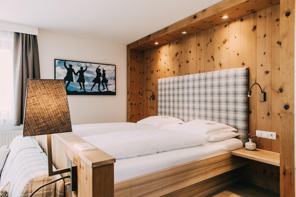 Úchvatné, nově zařízené dvojlůžkové pokoje s modřínovým starým dřevem a moderním designem, které lze v případě potřeby vybavit přistýlkou pro vaše dítě.
