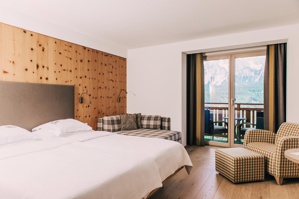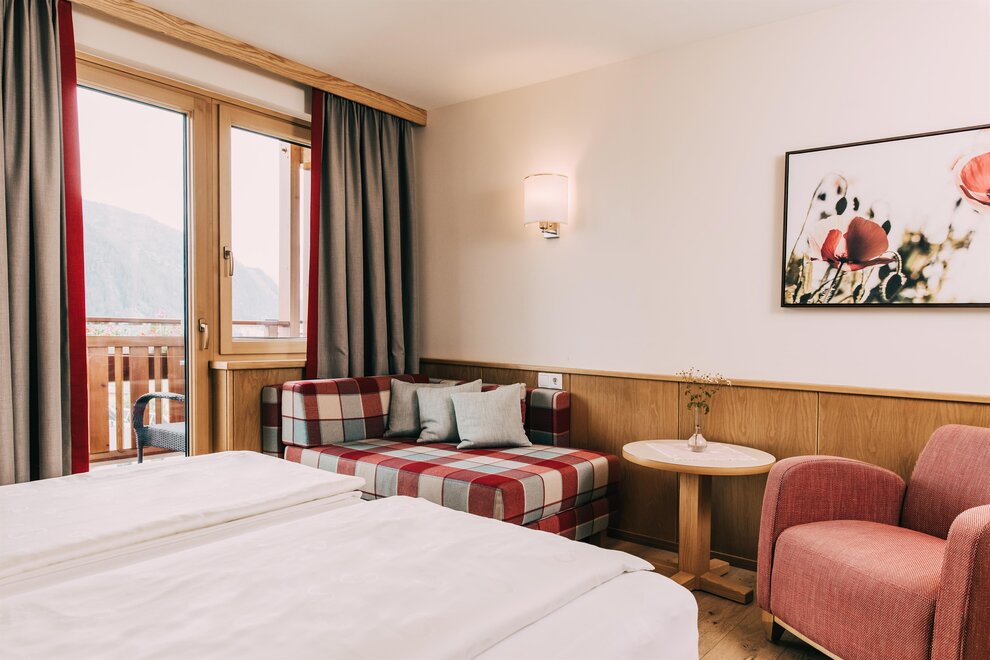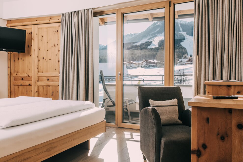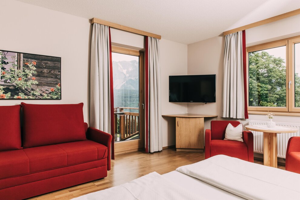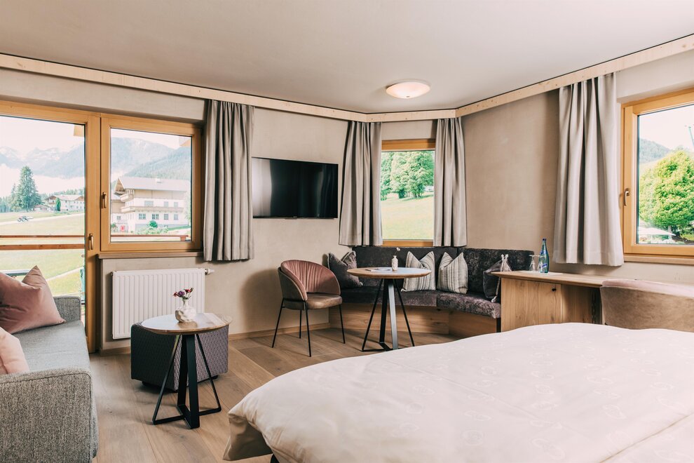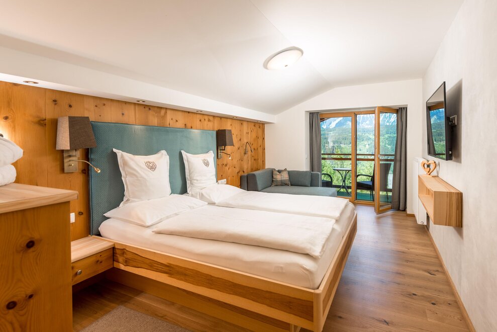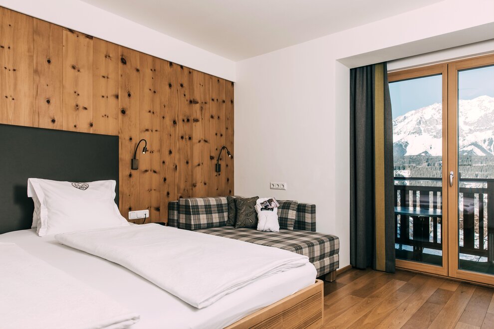 Rodinný pokoj typu "Rohrmoos" pro 2 dospělé a minimálně 1-2 děti (2 oddělené ložnice, 1-2 koupelny) s balkonem, 2x plochá obrazovka, trezor a telefon.