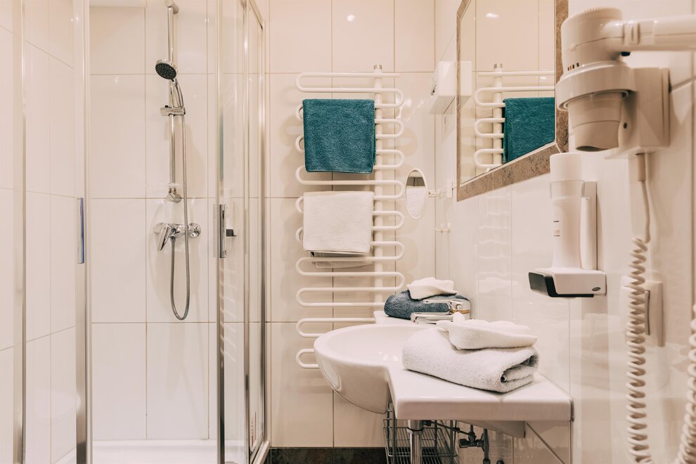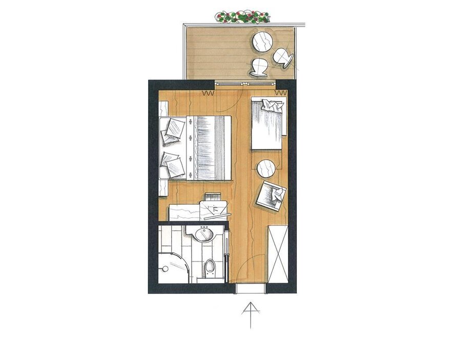 Komfortní jednolůžkový pokoj s balkónem, cca 18-20 m², s sprchou nebo vanou, plochou TV, telefonem a trezorem.