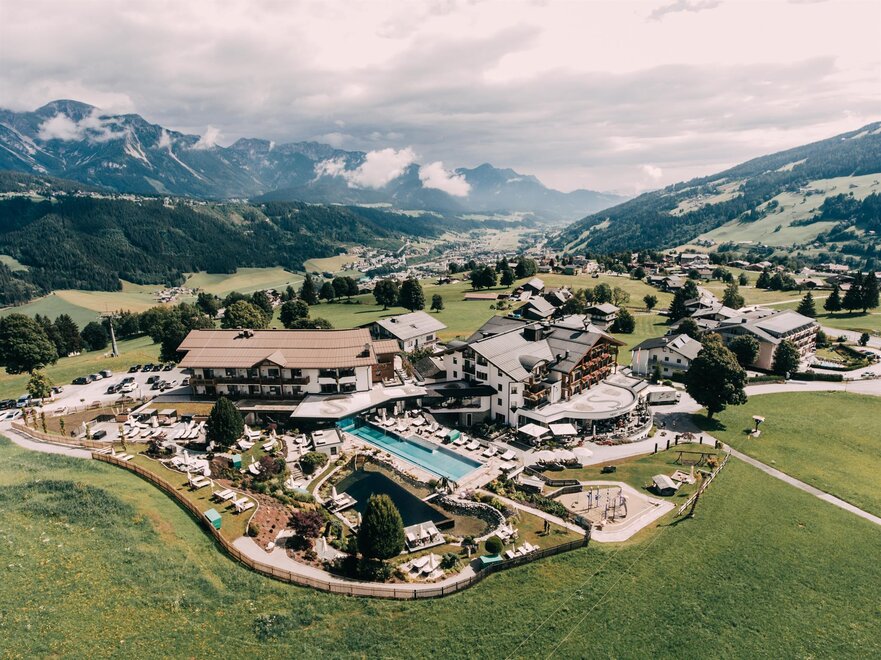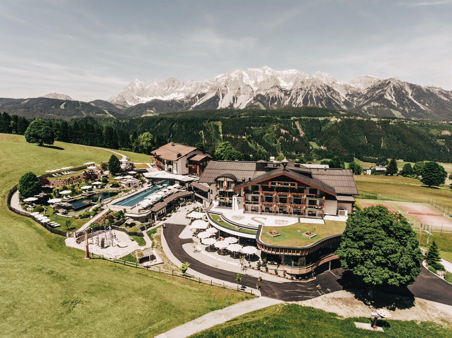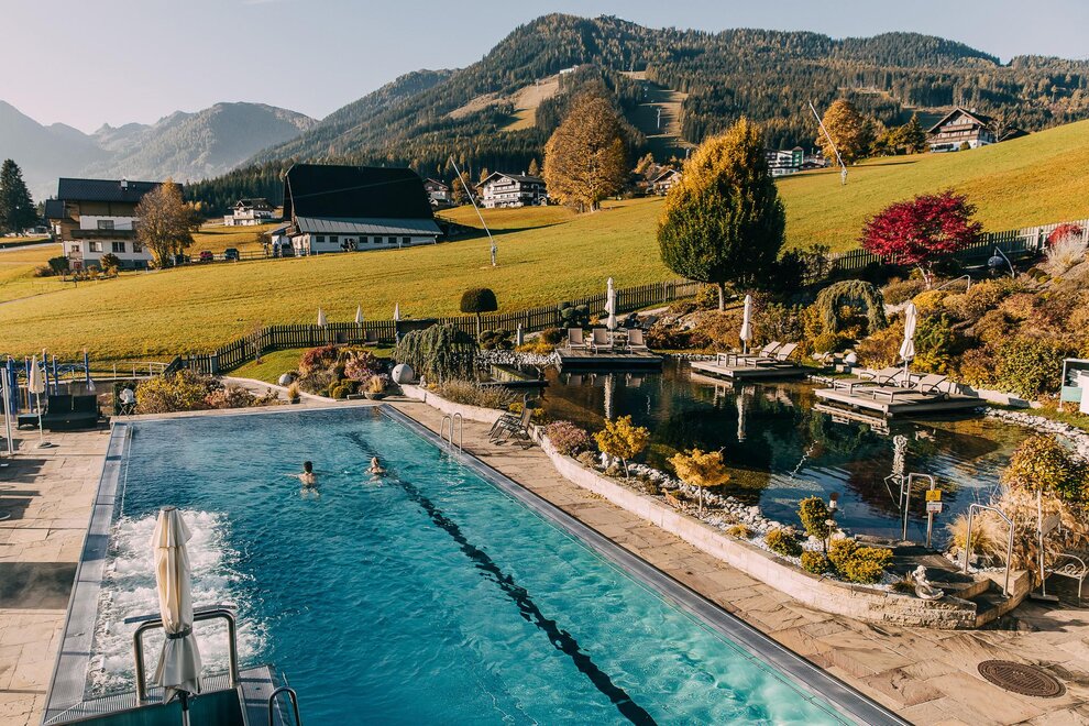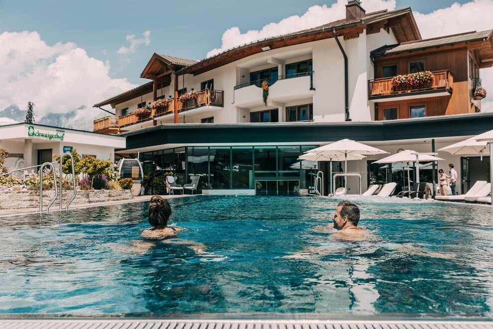 You will enjoy an unsurpassed vacation filled with wellness and activity. A home-style, Styrian atmosphere pervades the hotel. Wellness and amenities including indoor pool, heated panoramic adventure pool outside, large sauna facility and relaxation rooms. Massage, fitness and workout rooms, children's playroom. Look forward to ... our comfortable furnishings 1.400 m², with one relax lily awarded, Schwaigerhof-SPA - The new year-round heated 25 m outdoor swimming pool - Indoor pool with Bio-Sauna, steam bath, and infra-red cabin - Big sauna area with a lot of rest areas to relax Finnish-Sauna with wonderful views to the mountains, Bio-Sauna, sole steam bath and infra-red cabin Schwaigerhof Beauty area for massages and cosmetic Modern gym and Functional Training Galerie Gym for ball games and boulder wall 120 m² children playing room with children's computer, climbing wall, LEGO bricks, ... Lounges with table tennis, table soccer, air hockey, Billiard our great location On the sunny plateau of Rohrmoos, quiet, a lot of space around the hotel. By car only a few minutes away from the centre of Schladming - shopping opportunities inlcuded. Cozy huts, lush valleys and high peaks are inviting you. Dachstein glacier with Skywalk and Ice palace - the highlight of the region. our particularity Family-run hotel in the heart of Austria: We, as your host family, place great value on the "attention to detail" and support our team actively in all areas. Environmental sustainability, recognizable by our wood-chip heating system, is very important for us. In winter: right by the ski lift and slopes of the 4-Mountains Ski Area "Schladming-Rohrmoos", incl. the Hopsi bunny lift and the children's ski school right at our doorstep. In summer: Hikes with the owner. One-of-a-kind garden with a swimming pond and many places to relax. Our own herb garden. Outstanding cuisine - lovingly prepared with fresh ingredients - is our strength. Package offers for hikers, golfers, families and recreation seekers.