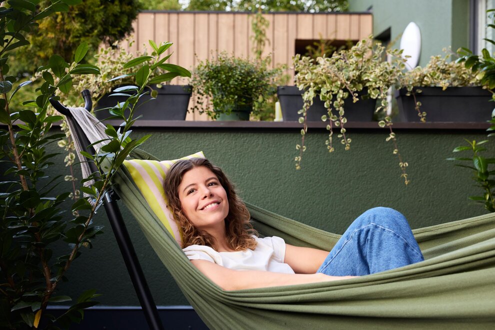 V útulné posteli boxspring, kterou lze flexibilně používat jako manželskou postel nebo dvě jednolůžka, a s dalším rozkládacím gaučem najdou na 24 m² až 3 osoby dostatek prostoru pro pohodlí.