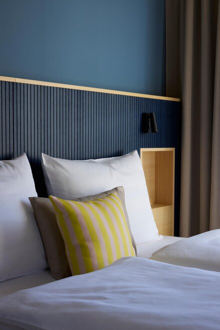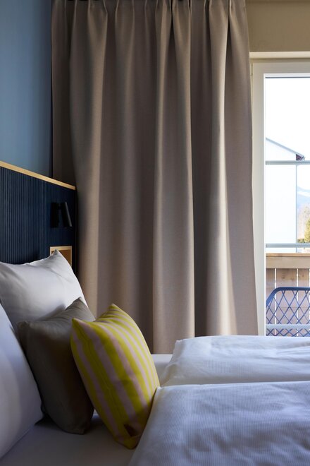 Chytré A útulné – naše malé dvojlůžkové pokoje s balkonem jsou díky chytré rozdělitelnou boxspring posteli ideální jak pro páry, přátele, tak i jednotlivé cestovatele.