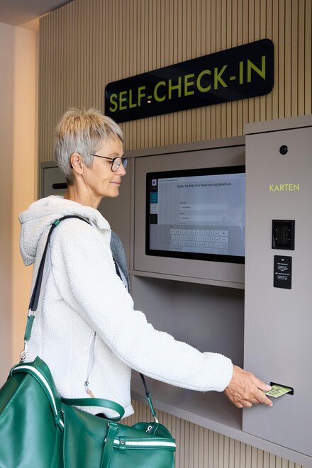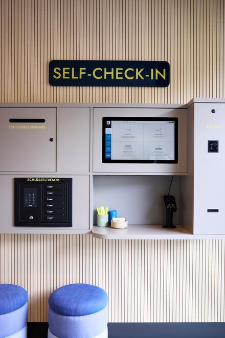 V den příjezdu je tvůj pokoj a parkoviště k dispozici nejpozději od 15:00. Check-in probíhá velmi snadno na chytrém hotelovém terminálu – jakmile jsou všechny údaje a platba kompletní, okamžitě dostaneš své klíčové karty.