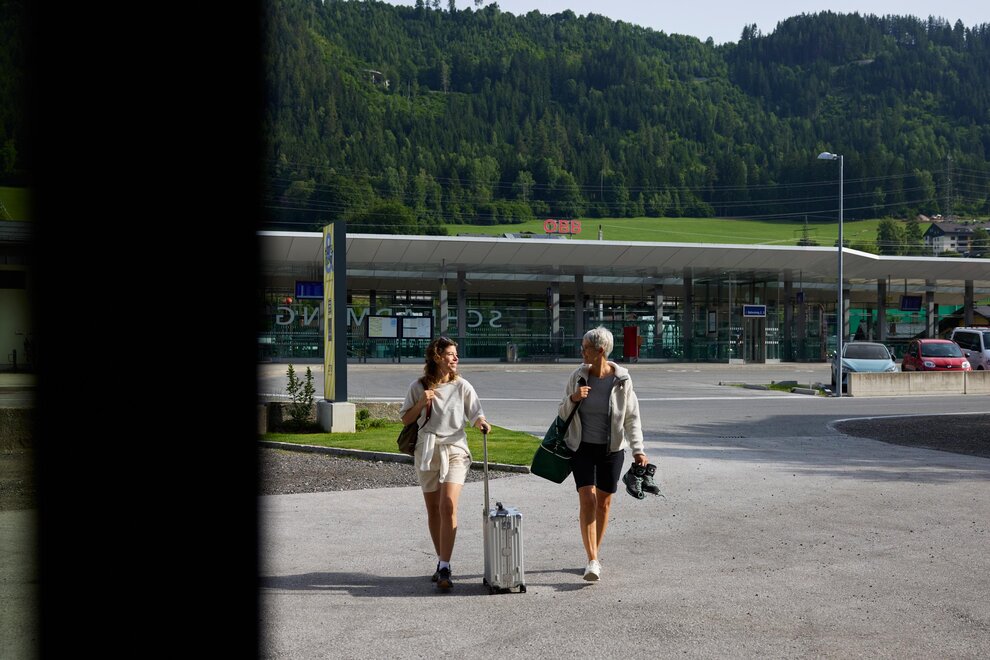 Nebo preferuješ cestování vlakem? Náš hotel UND se nachází přímo naproti nádraží Schladming – ideální pro vlak, taxi a autobus.