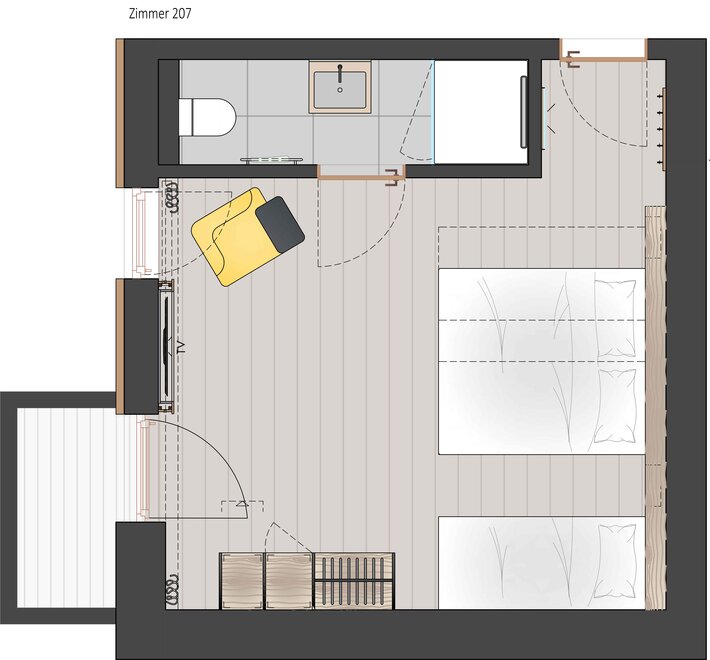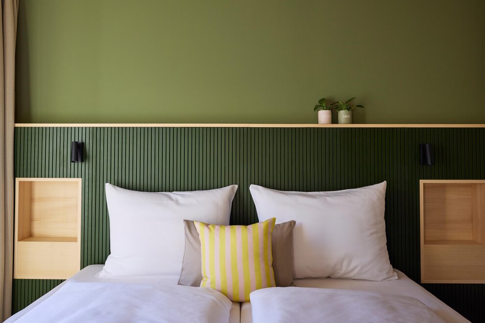 Naše útulné dvoulůžkové pokoje jsou vybaveny chybným oddělitelným boxspringovým lůžkem a balkonem pro přestávky na čerstvém vzduchu. Na kávovém a čajovém stanovišti najdete jemný výběr kávy a bio čajů, které si po náročném dni nejlépe vychutnáte v pohodlném lounge & pracovním křesle.