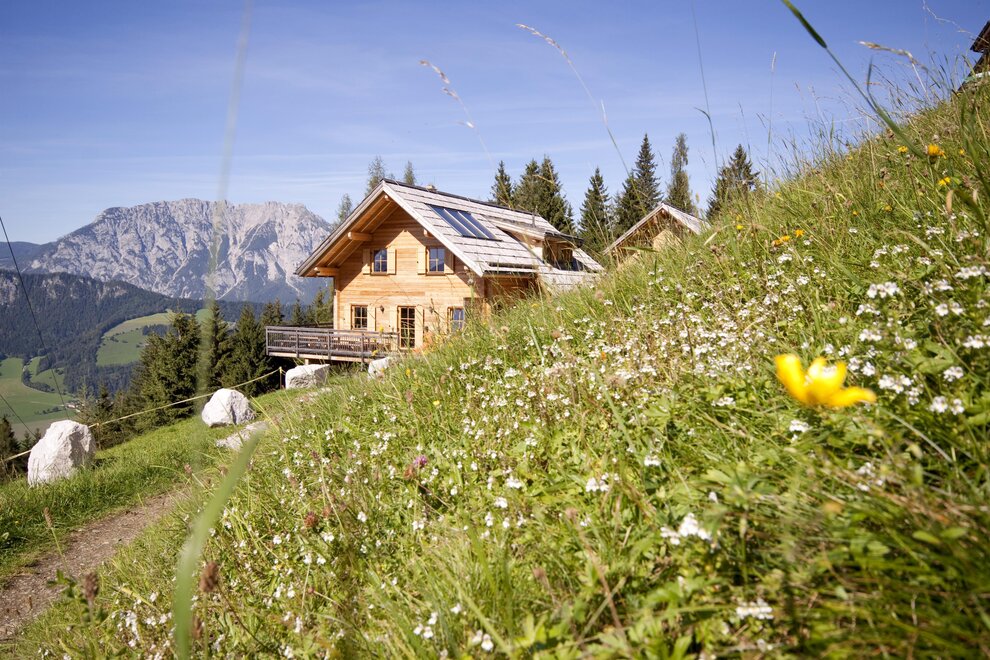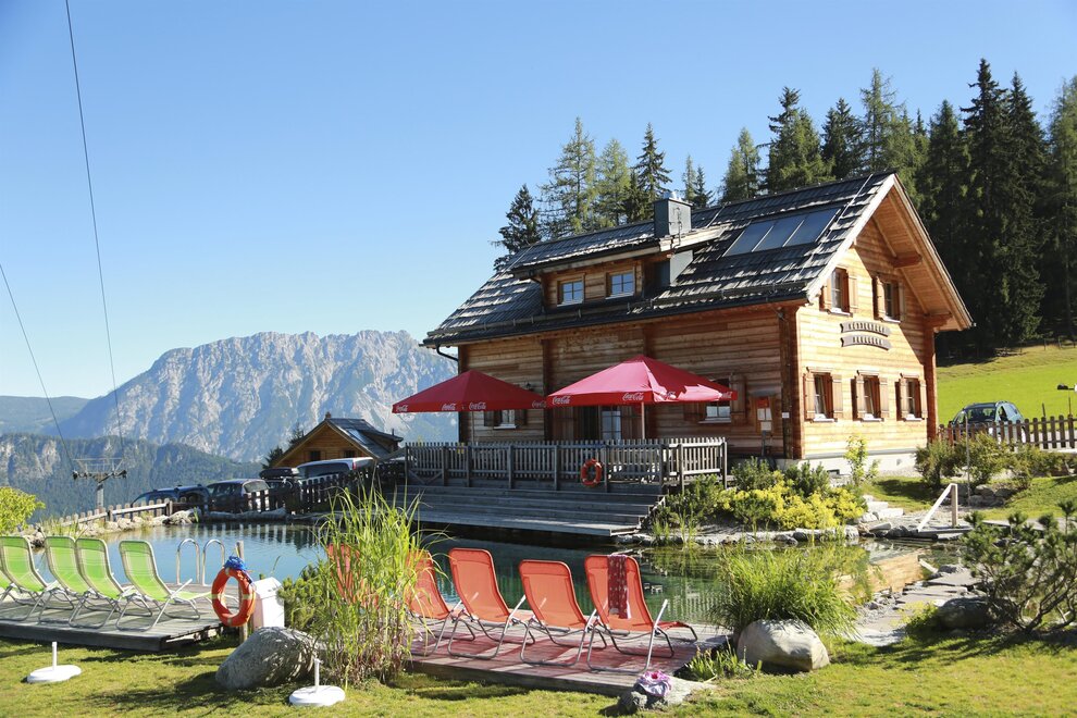Na ploše 24 000 m² vznikla ve výšce 1 200 m uprostřed lyžařské a turistické oblasti naše luxusní horská chata s 13 chatami, z nichž 7 je pro až 24 osob (SEP-STM), 6 chat pro až 12 osob (SPA-STM) a 1 apartmán pro až 10 osob (APA-STM). Pouze 1 hodinu jízdy autem od města festivalů Salzburg, 3 hodiny od Vídně nebo několik kilometrů od Schladmingu se chata nachází v ideální lokalitě. Slunné, velmi klidné, s nádherným výhledem do údolí Ennstal a celoročně snadno dostupné autem. Chaty jsou ideální pro skupiny, přátele nebo rodiny. Luxusní a útulné prostředí našich chat vám zaručuje stejně relaxační jako nezapomenutelnou dovolenou. V přízemí zásobovací chaty (otevřeno v hlavních sezónních časech), kde je v patře postaven apartmán, si můžete zakoupit nápoje, pečivo, pizzy, potraviny, cigarety a také je nabízen servis na rohlíky.