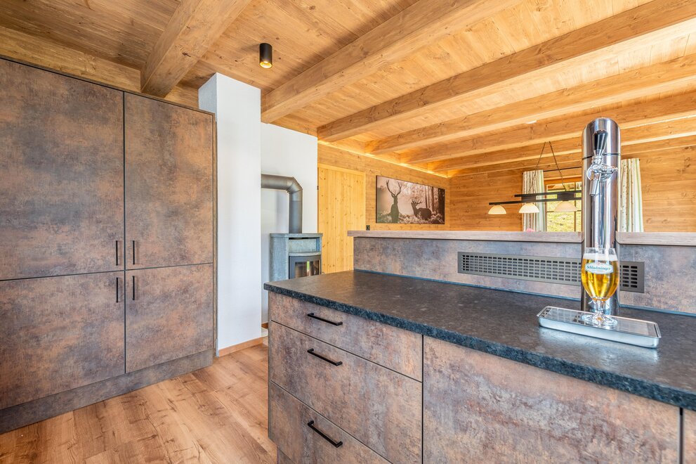 Všechny 7 jsou postaveny ze dřeva a jsou velmi útulně zařízené. Přízemí: Velká chalupová místnost (cca 35 m²) se sedacím koutem, krbovými kamny, DVD-CD přehrávačem a SAT-TV. Integrovaná plně vybavená kuchyň s el. sporákem, troubou, lednicí s malým mrazákem, myčkou nádobí, mikrovlnnou troubou, kávovarem, rychlovarnou konvicí, toustovačem a výčepním zařízením na pivo. Východ na slunnou terasu se sedacím koutem a grilem. 2 ložnice s manželskou postelí a rozkládací pohovkou. Koupelna se 2 sprchami a saunou. 1 WC. Podkroví: 4 ložnice pro 2 – 4 osoby s manželskou postelí a rozkládací pohovkou, 3 DU/WC. Chaty mají centrální topení a částečně podlahové topení. Prosíme, aby se v chatách a apartmánu nekouřilo!