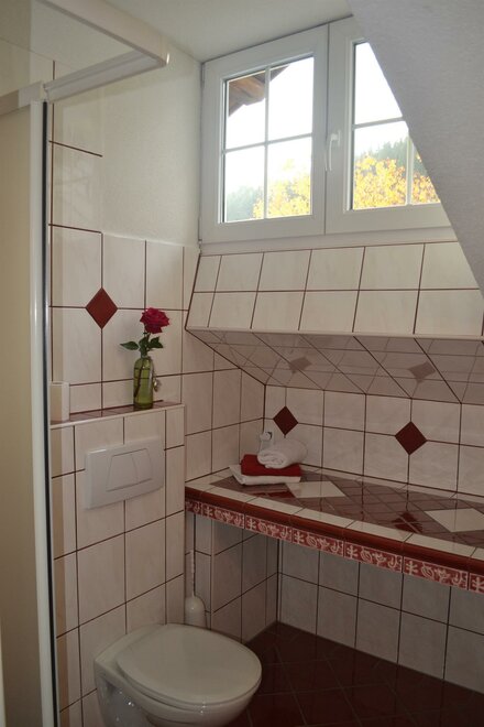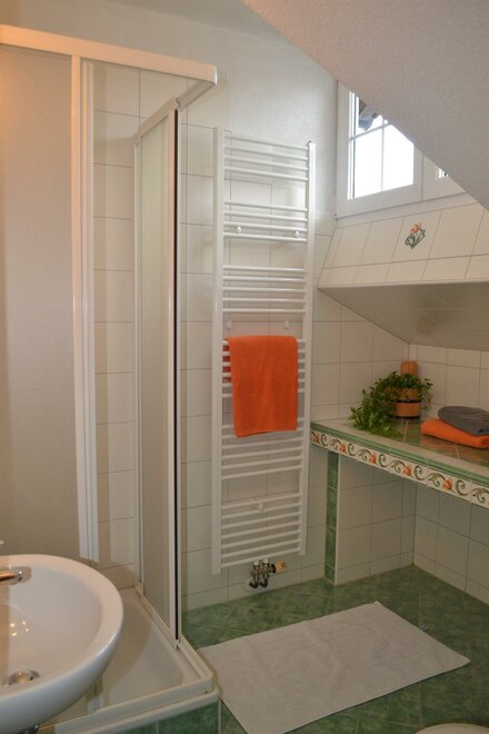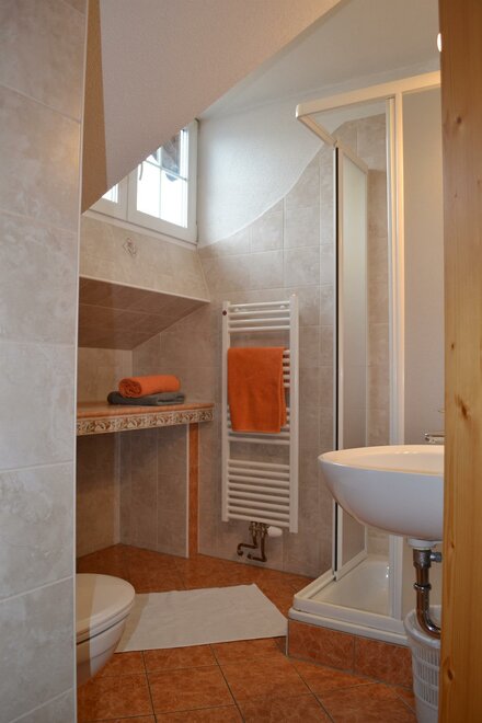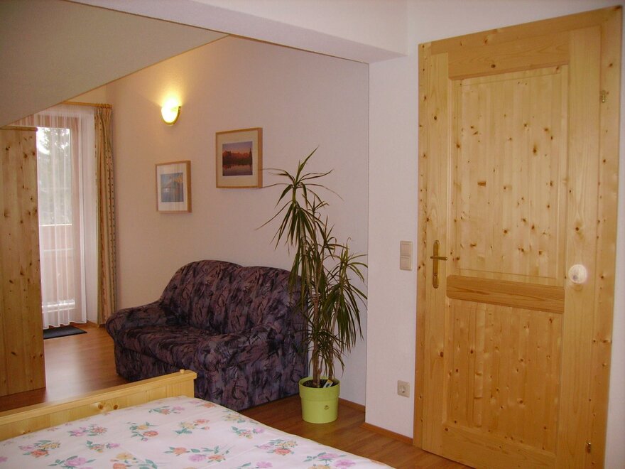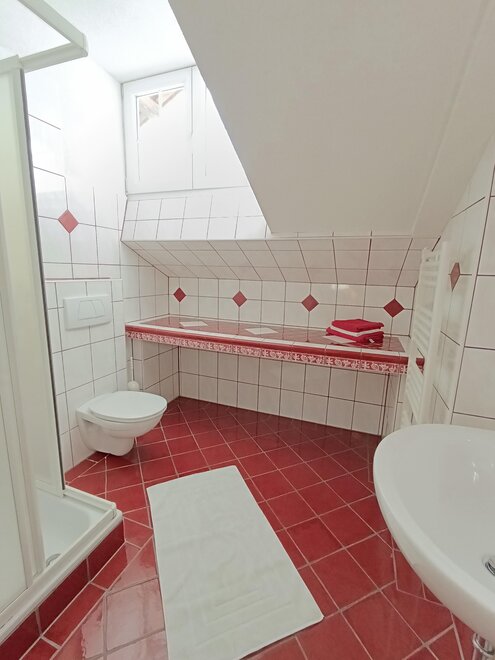 Apartmán pro 4 až 6 osob (obytná plocha 55 m²) disponuje kompletně vybavenou, rustikální obývací kuchyní s TV, dvěma samostatnými ložnicemi, každá se sprchou/WC, malou předsíní a balkonem.