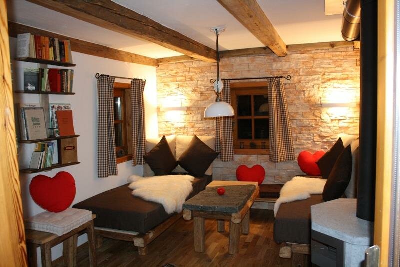 Naše láskyplně zrekonstruovaná chalupa byla postavena v roce 1930 jako dřevěný dům a nachází se na panoramatické terase (výhled na Dachstein, Stoderzinken a Weißenbach) ve výšce cca 770 m n.m. Dolní stanice Hauser Kaibling je vzdálena cca 1 km a lze ji dosáhnout během několika minut. Dům obýváte sami s max. 6 osobami. Rekreační dům se skládá ze 2 ložnic, obývacího pokoje s krbovými kamny (které slouží jako místo na spaní pro 5. a 6. osobu), kuchyně s krbovými kamny a elektrickým sporákem, sprchy/WC + extra WC, přírodní sklepa, balkonu a terasy. Spojení ke skibusu je vzdáleno cca 300 m od domu a trvá cca 3 minuty k dolní stanici lanovky Hauser Kaibling. Od května 2012 (dodání se zpozdilo až v dubnu) si naši hosté mohou také užívat infračervenou saunu s výhledem.