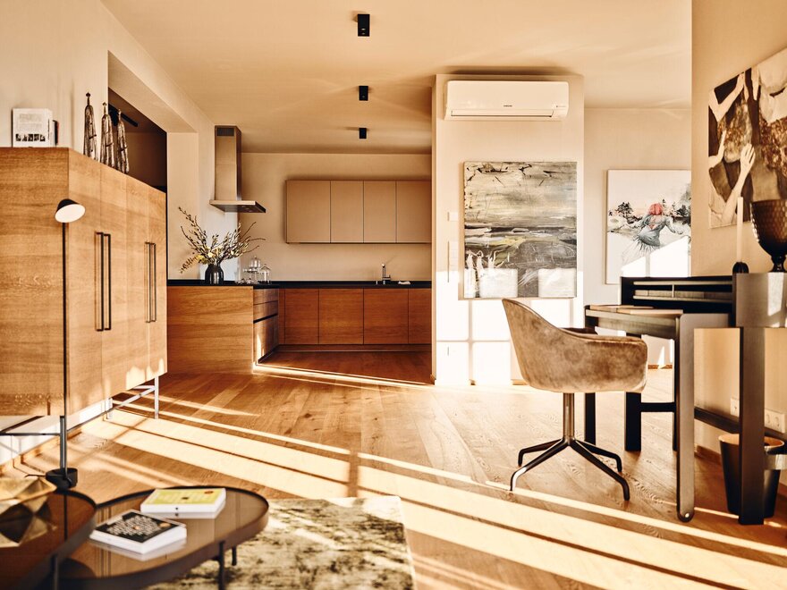 elektrický krb, Größe m²: 104, nádobí k dispozici, toustovač, koupací plášť na přání, domácí zvířata po domluvě, WiFi, oddělený obýv./ložnice, balkón, topení, skříň, ručníky k dispozici, jídelna, obytná kuchyň, salonek, telefon, samostatná ložnice: 2, psací stůl, základy (Ručníky, povlečení, mýdlo a toaletní papír), kuchyň, dřez na mytí nádobí, TV, moderní vybavení nábytkem, varná konvice, dřevěná/parketpvá podloha, povlečení k dispozici, kuchyňské nádobí, toaletní potřeby, klimatizace