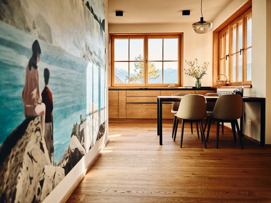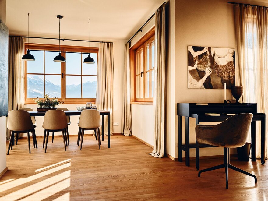 Rezidence Grimming, pojmenovaná po impozantní hoře v regionu, nabízí nejlepší pohodlí spojené s nejvyšším soukromím. Na 180 m² naleznete místo pro 6 osob (a 2 další osoby na gauči).